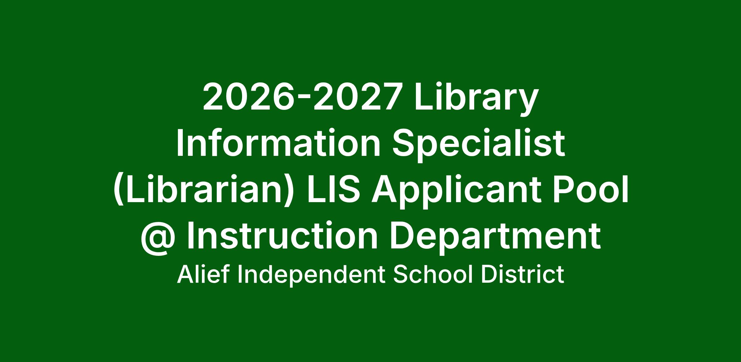 2026-2027 Librarian Information Specialist Pool - All levels @ Instruction Department