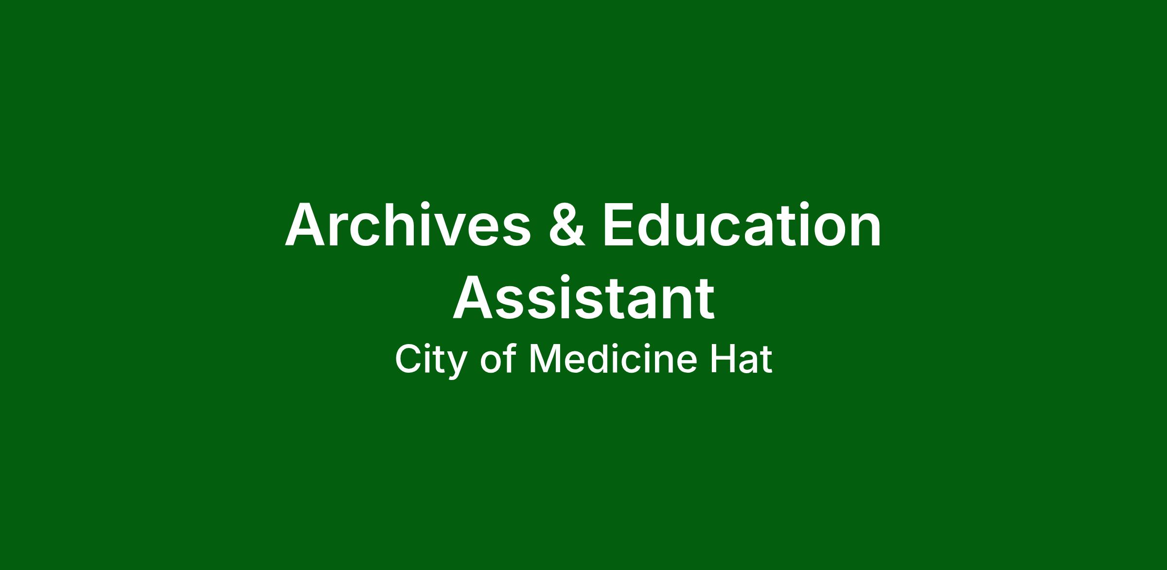 The City of Medicine Hat is looking for a dedicated and detail-oriented Archives & Education Assistant to support archival organization and preservation. This temporary position offers an excellent opportunity to gain hands-on experience in archival work, working both with historical records and digital environments.