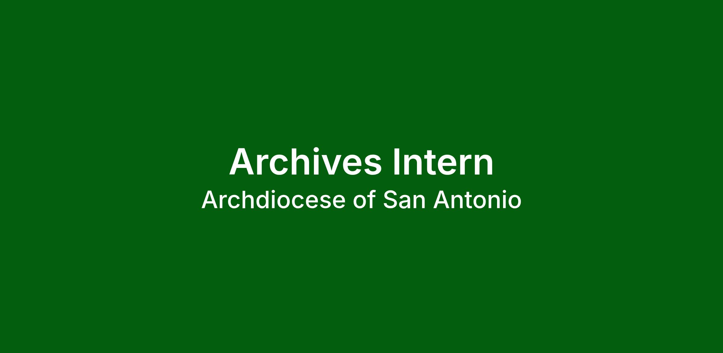 Summary: The Archdiocese of San Antonio is seeking a motivated and passionate Intern to support the Archives and Records Management Office with grant supported project. The intern will be responsible for building the foundation for an interactive history online using either StoryMapsJS/TimelineJS software with stories, sound recordings and imagery. The intern will research and draft each story, design the layout of the software, and prepare digital content. The Archives staff will offer guidance in searching collections for necessary stories and information and train them on digitization and cataloging of materials. The interns will also contribute to the processing manual on the project to continue the growth of the online presence.