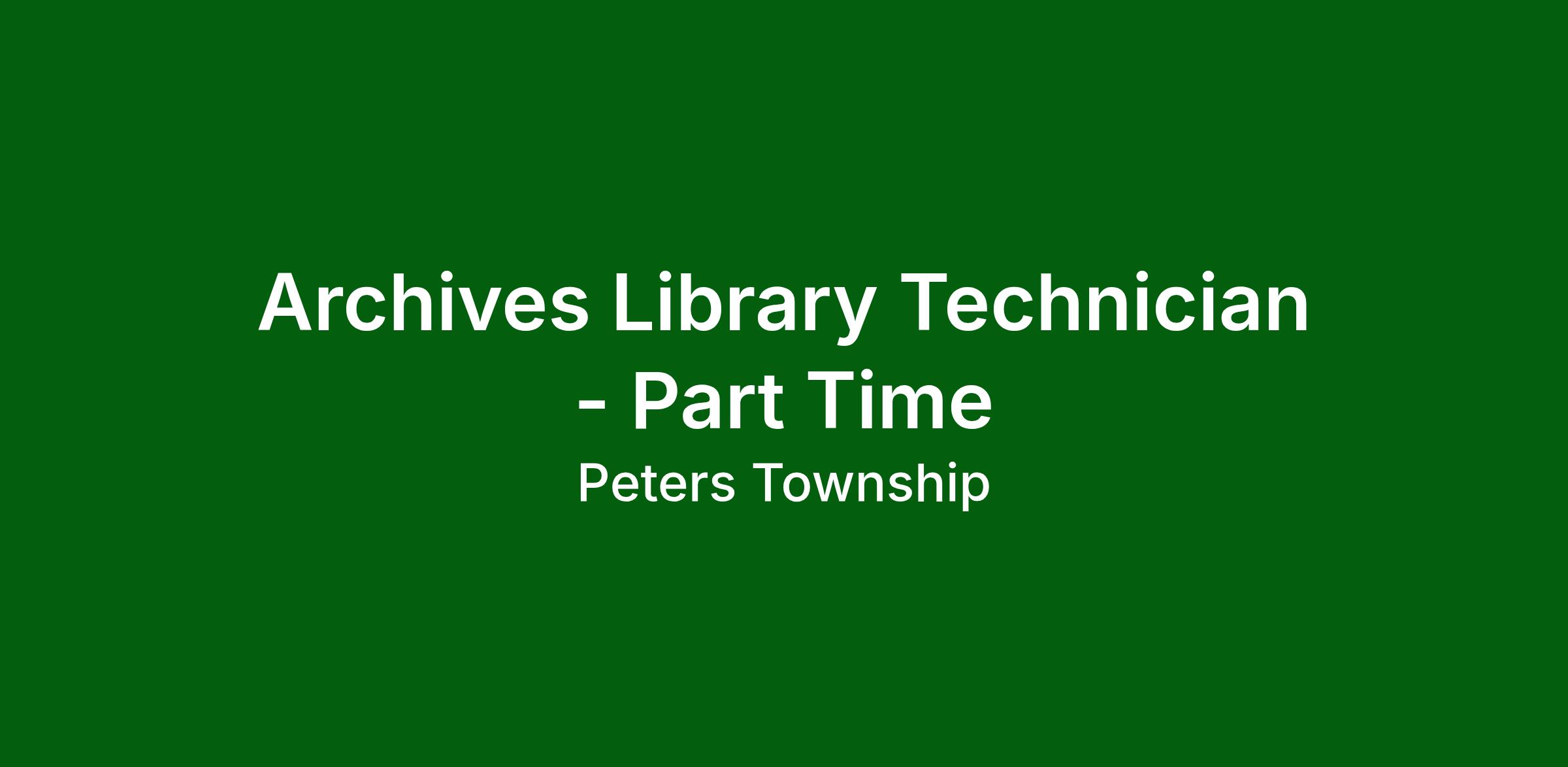 The Peters Township Public Library is seeking to fill the part-time position of Archivist. The Archivist, as part of the library’s Adult Services Department, performs the traditional archival duties of acquisition, description, and preservation, and also works to promote the archives and township history by engaging with the community through displays, programming, and outreach. The right candidate for the position will have a passion for preserving and promoting local history, engaging with the public, and using archival materials to tell stories that connect current generations with those of the past.
