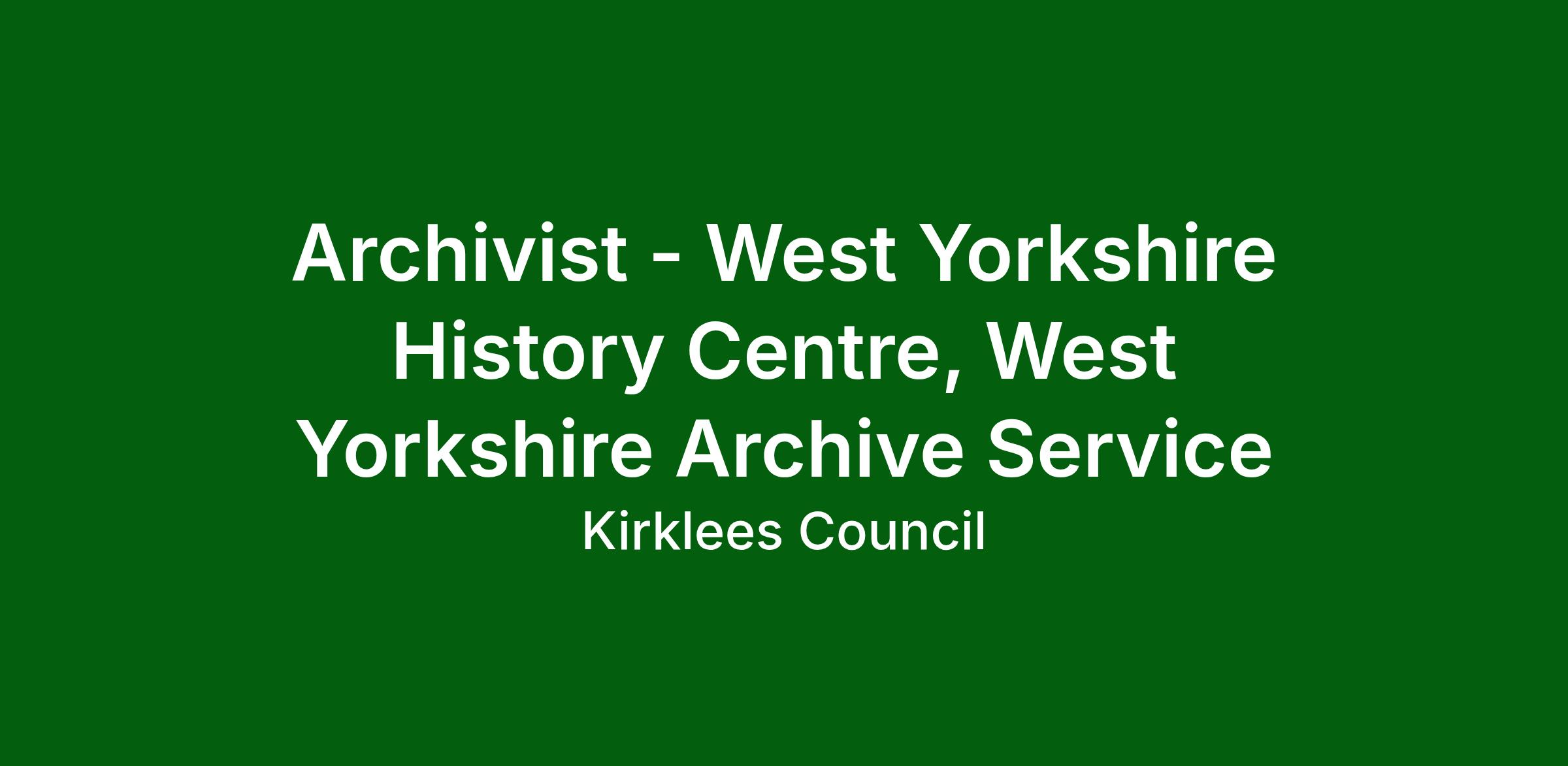 Archivist - West Yorkshire History Centre, West Yorkshire Archive Service