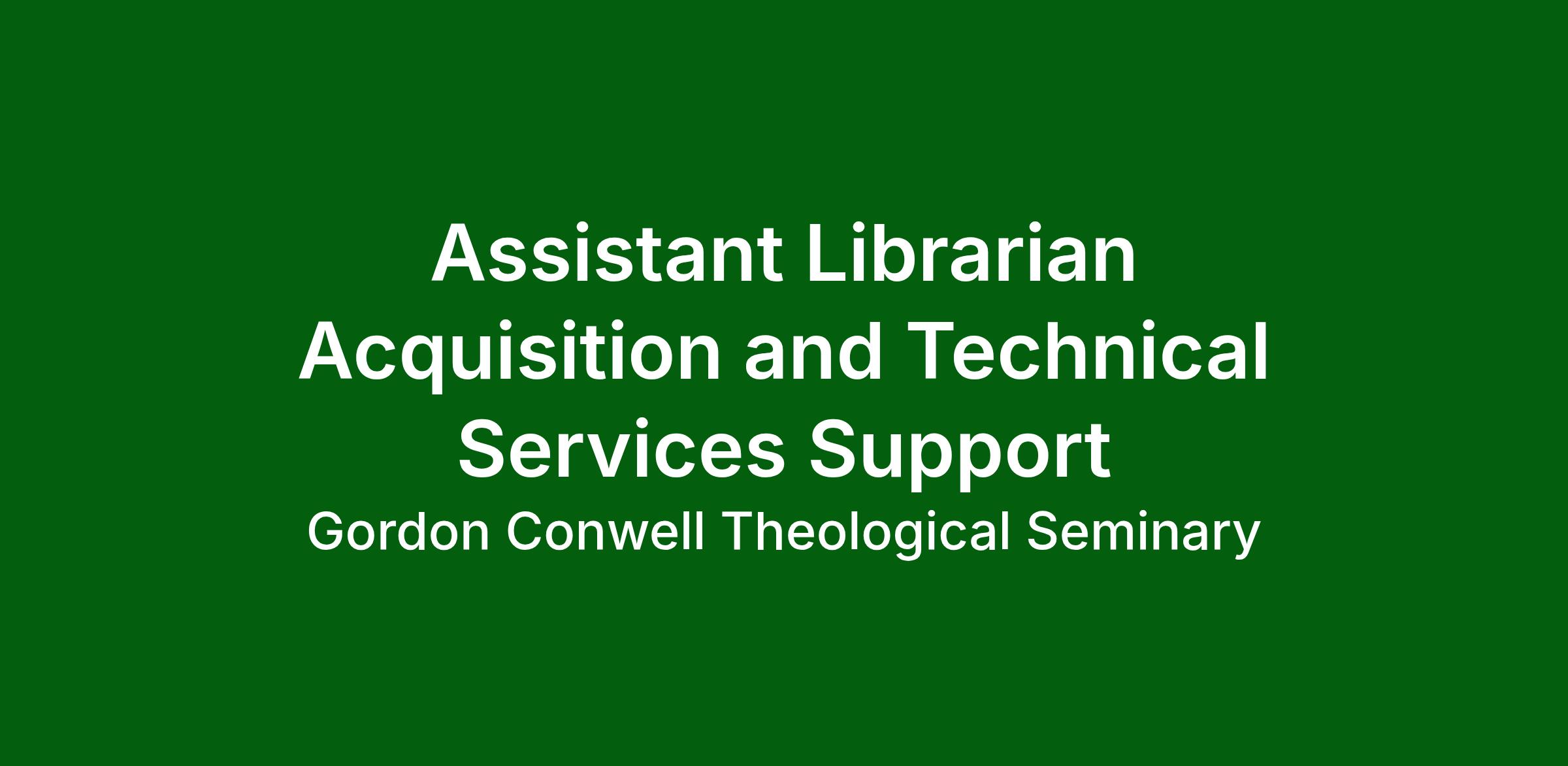 • Works with Assistant Librarian for Cataloging and Technical Services and technical services staff at all Gordon-Conwell libraries to establish and disseminate shared technical services policies and procedures.