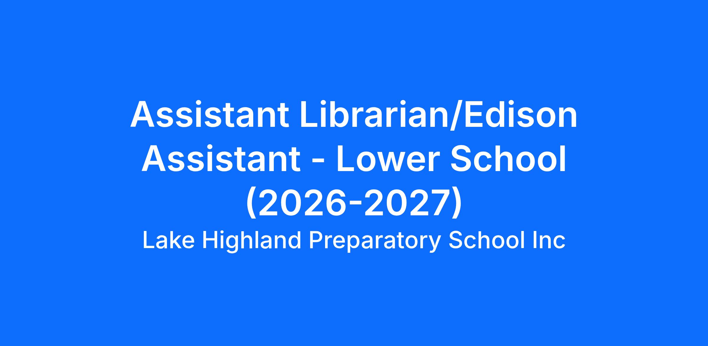 Lake Highland’s Lower School seeks an Assistant Librarian to assist the Lower School Librarian in managing daily library operations, encourage collaboration with the Middle and Upper School divisions and the local community, and provide students with digital citizenship skills to improve learning outcomes. The Assistant Librarian also supports our Edison Program by providing testing accommodations and one-on-one support for students, collaborating with our Edison Specialist to implement accommodations and support students in small group settings or one-on-one.