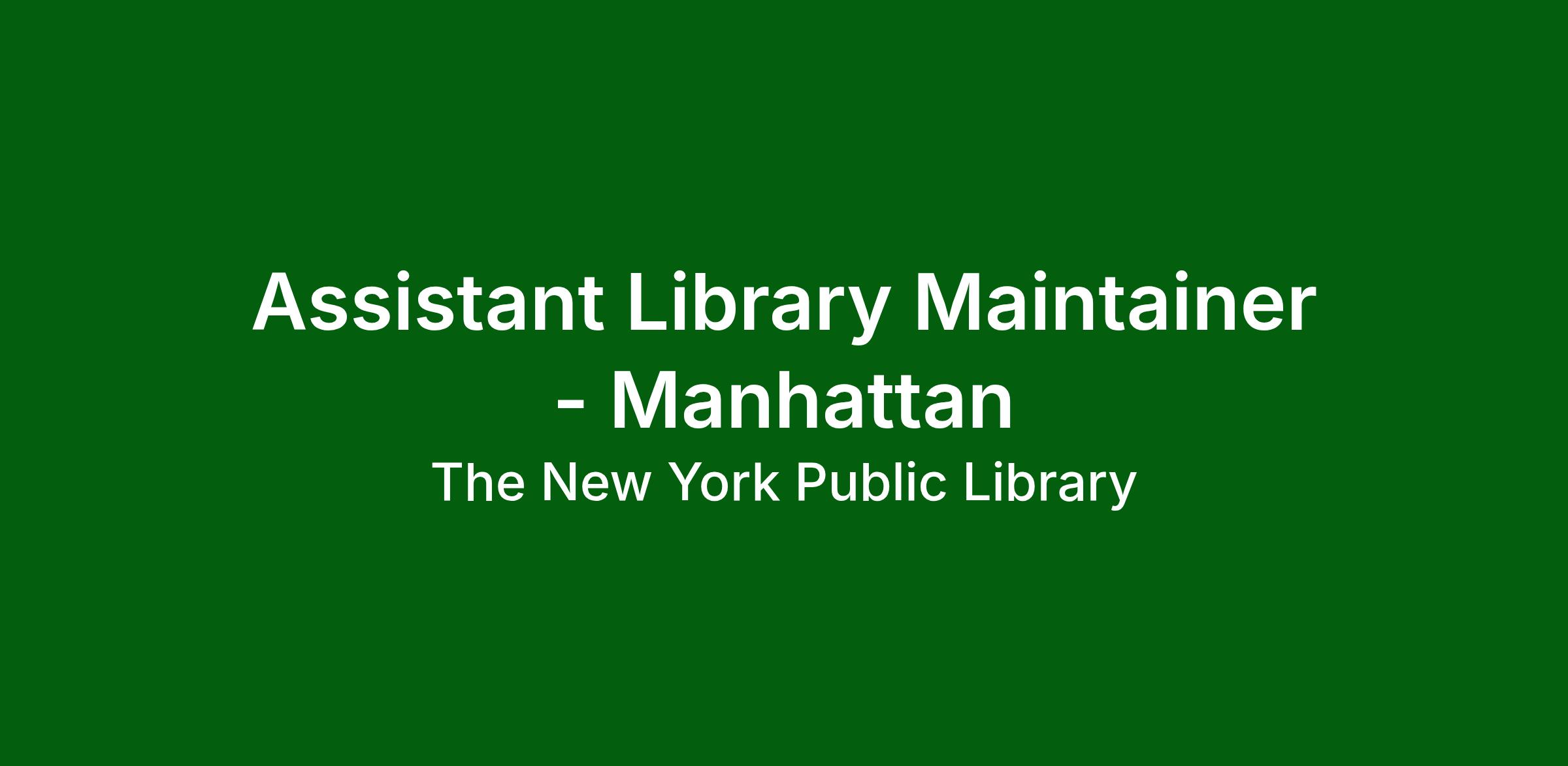 NYPL is seeking an Assistant Library Maintainer to maintain and repair library building systems and equipment to provide an environment that is clean, safe and comfortable for our Library users and employees.