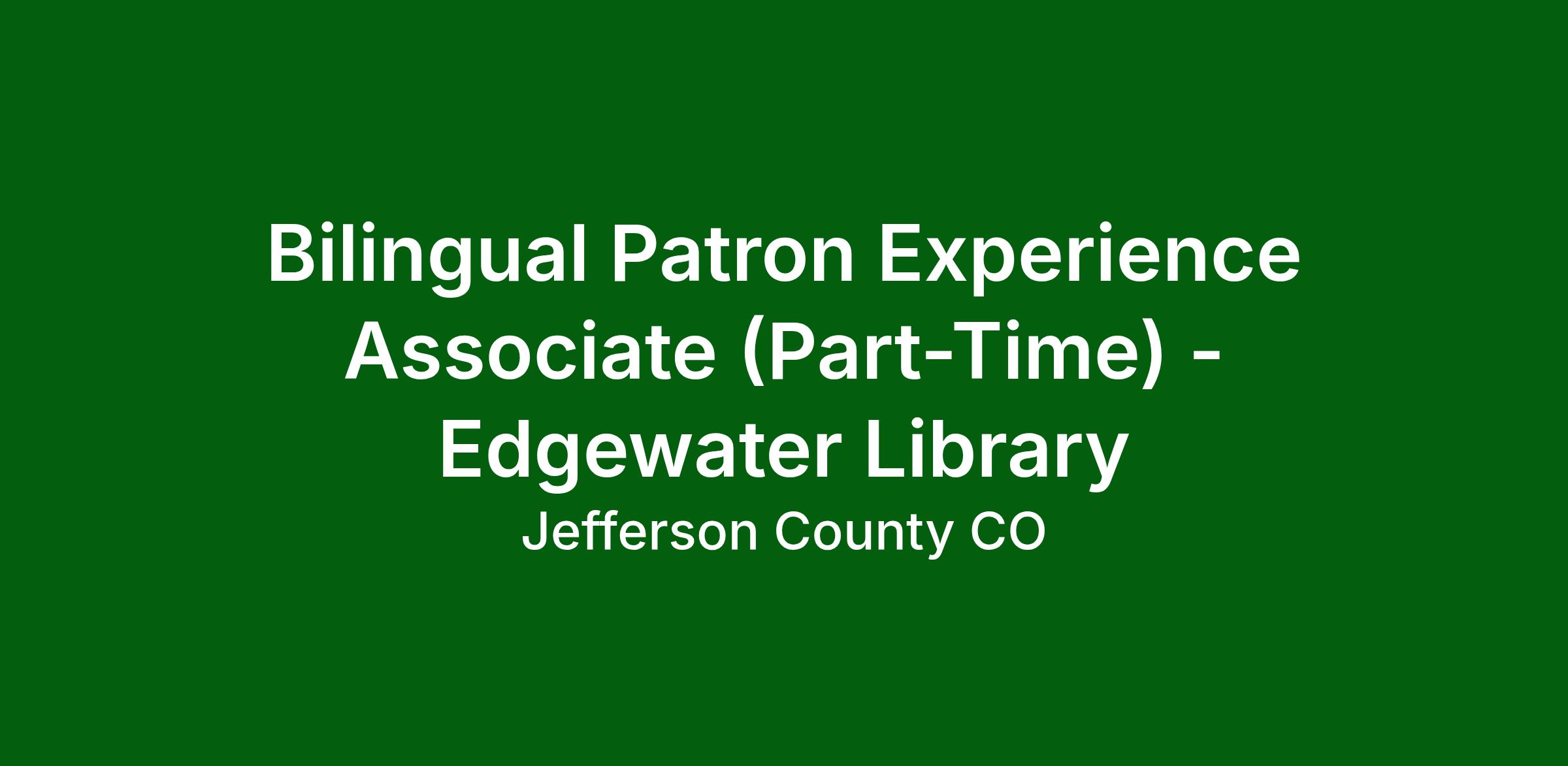 We are seeking a dynamic, customer-focused Bilingual Patron Experience Associate at the Edgewater Library to provide frontline library service to the diverse and growing residents of Jefferson County and beyond. Helping people find the information they need, whether it be what to read next, how to download an e-book or how to find a job, is what we do all day, every day. If you're passionate about providing outstanding customer service, serving your community, and are ready to contribute to the Library's success, then this may be the job for you!