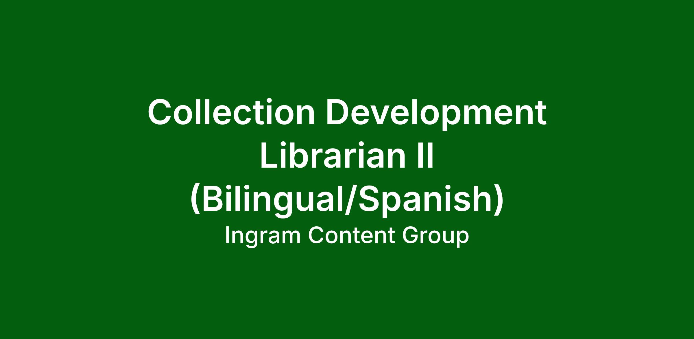 Ingram Content Group (ICG) is searching for a Collection Development Librarian II bilingual in Spanish to join our innovative Collection and Metadata Development team in New York. This is an exciting opportunity to surface the best publishers of authentic Spanish titles worldwide for our publisher solutions teams, and to develop a cohesive Spanish-language collection development service that helps libraries find and select the best content for their communities. You will also work with the other Ingram Collection Development Librarians to grow and maintain our proprietary title database(s) and to create and deliver balanced and inclusive lists and services for Spanish language materials and other categories as assigned. You’ll represent Ingram Library Services in meetings with Spanish-language publishers and libraries and serve as the Spanish-language expert and thought leader for the Collection and Metadata Development department. You will also help us reach our library customers by creating and delivering content for Ingram’s e-newsletters, webinars, podcasts, customer meetings, and conference presentations. This is not a remote position, but hybrid schedules will be offered.