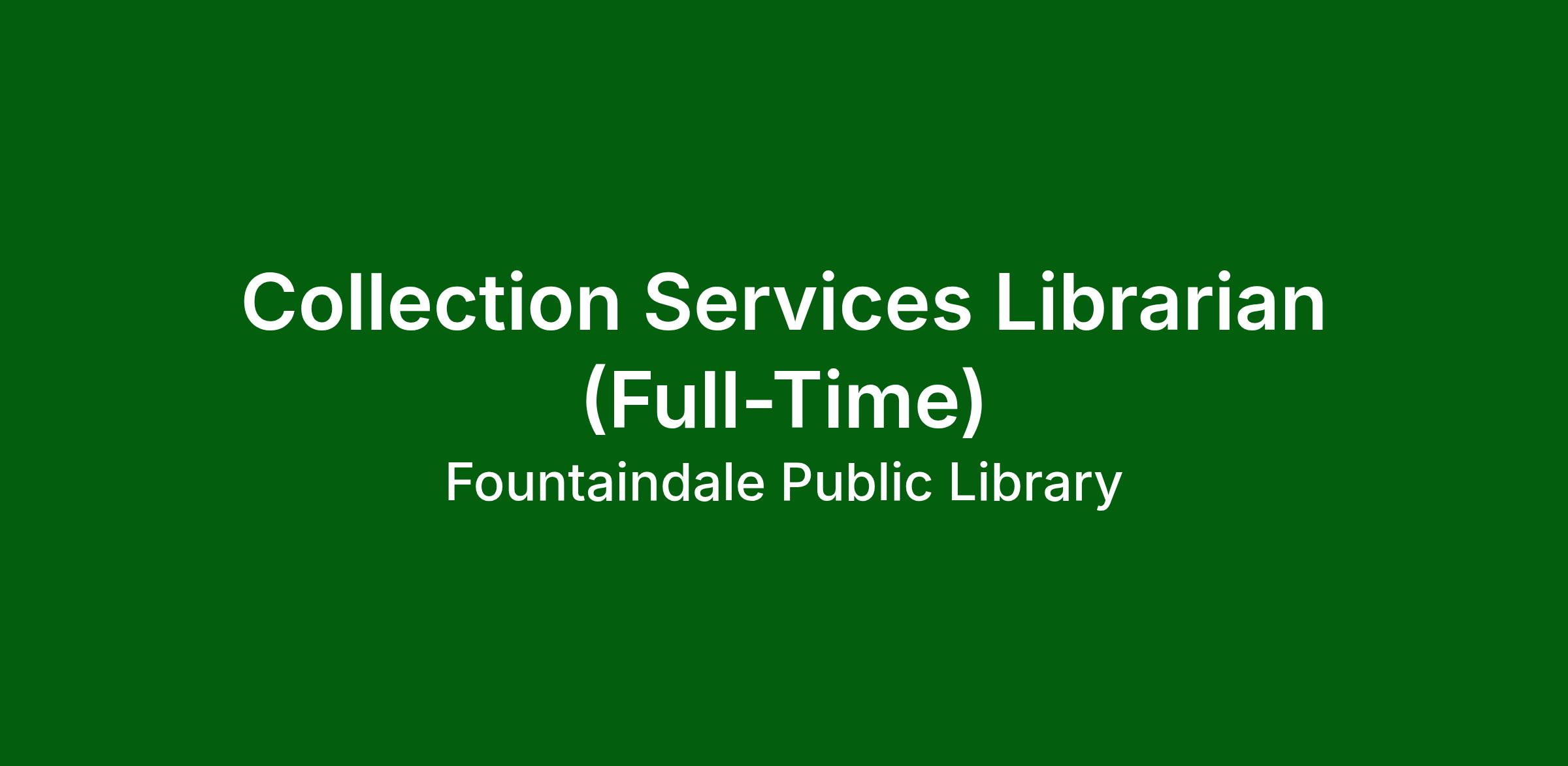 Work is performed in a typical library environment. Full-time position. Some evening and weekend shifts are required.