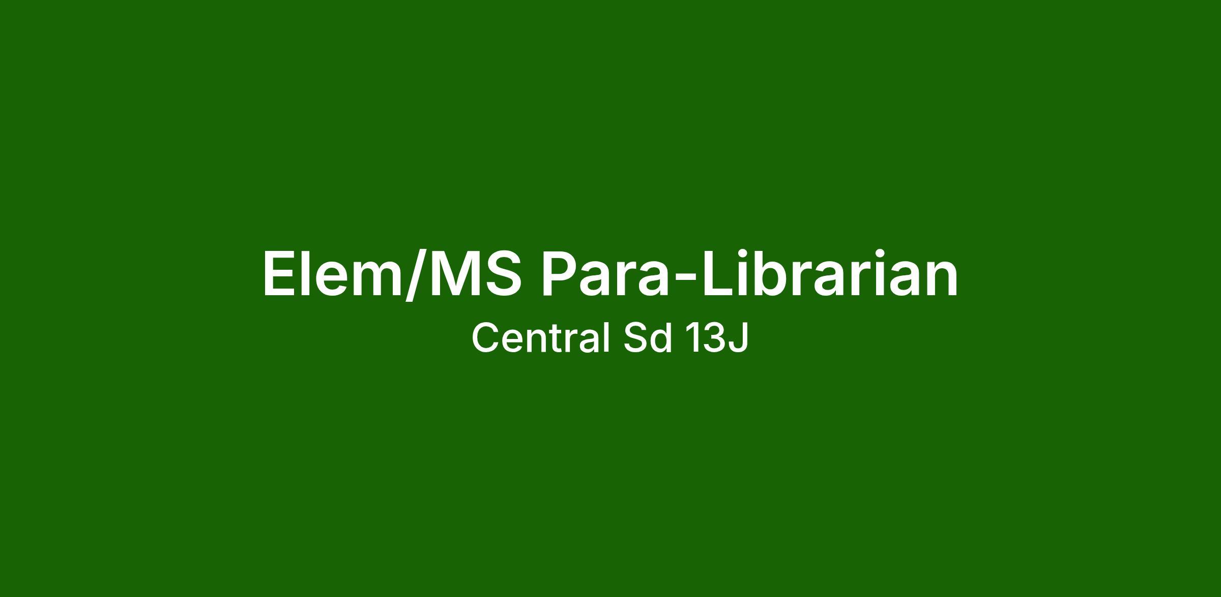 The job of Elementary/Middle School Para-Librarian is done for the purpose/s of overseeing and maintaining the operation of the library, media center, and computer lab; processing and distributing textbooks, library books, and periodicals; and maintaining and reporting records of activities. Bilingual candidates preferred.
