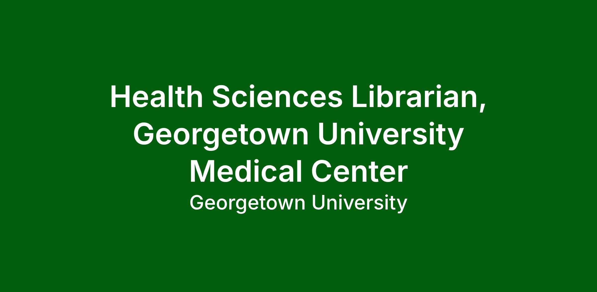 The Health Sciences Librarian at Dahlgren Memorial Library (DML) participates in the provision of research support, reference, outreach support and instruction to a broad range of patron groups affiliated with Georgetown University Medical Center (GUMC). This full-time staff position plays a significant role in connecting and promoting DML services and resources directly to users and provides support for their integration within the learning and research environments by providing reference and research support services [via different modalities such as in-person, telephone, email, chat, and web conferencing] to the students, faculty, staff, and researchers of GUMC, including: The School of Medicine [SoM], the Berkley School of Nursing [BSoN], the School of Heath [SoH], the Lombardi Comprehensive Cancer Center [LCCC], the Biomedical Graduate Education [BGE] programs, Biomedical and Health Sciences Research Organizations and MedStar Georgetown University Hospital [MGUH].