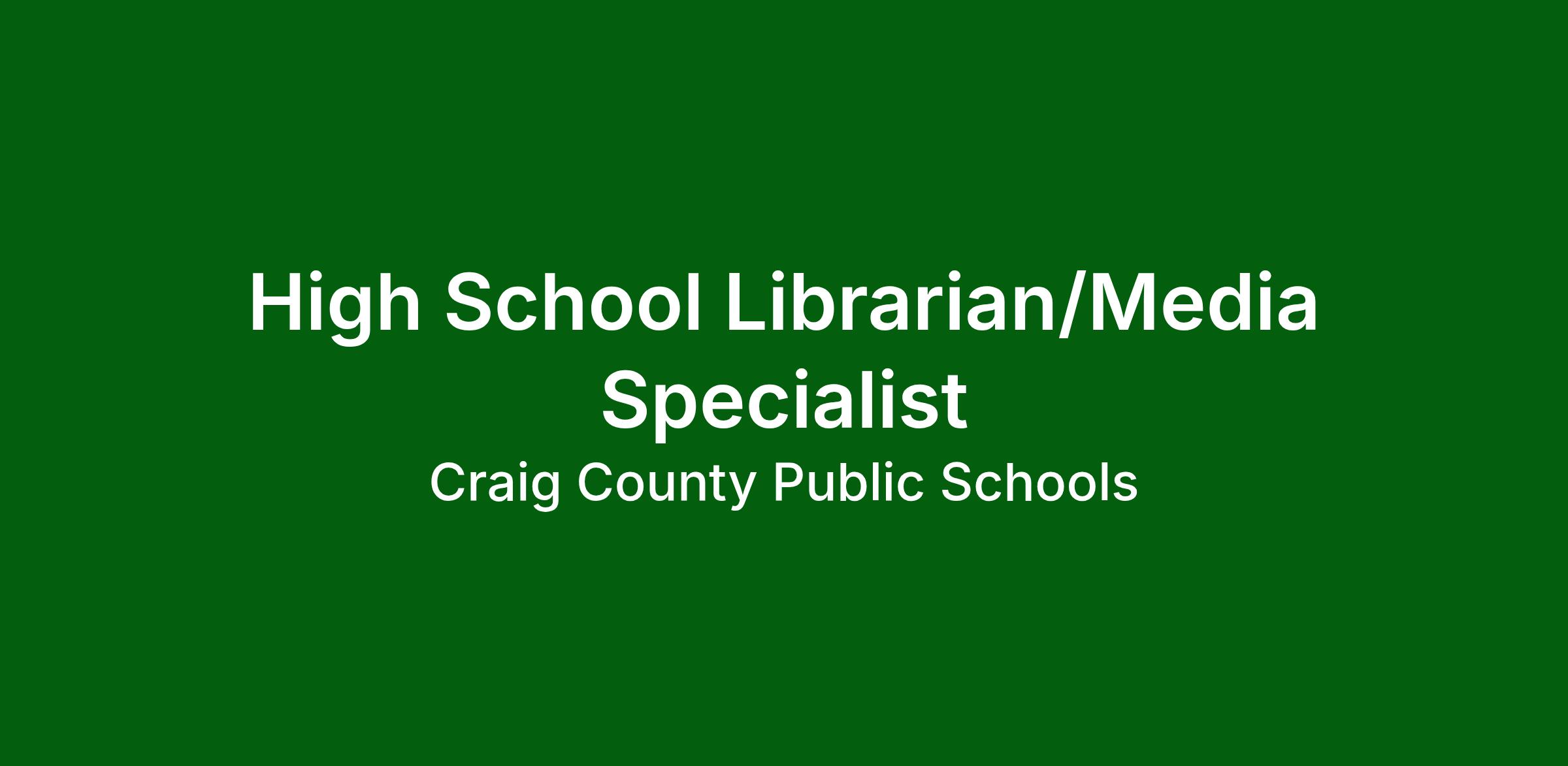 The Craig County School Board in Virginia is now accepting applications for a high school librarian/media specialist position that will be available within our division for the 2026-2027 school year.