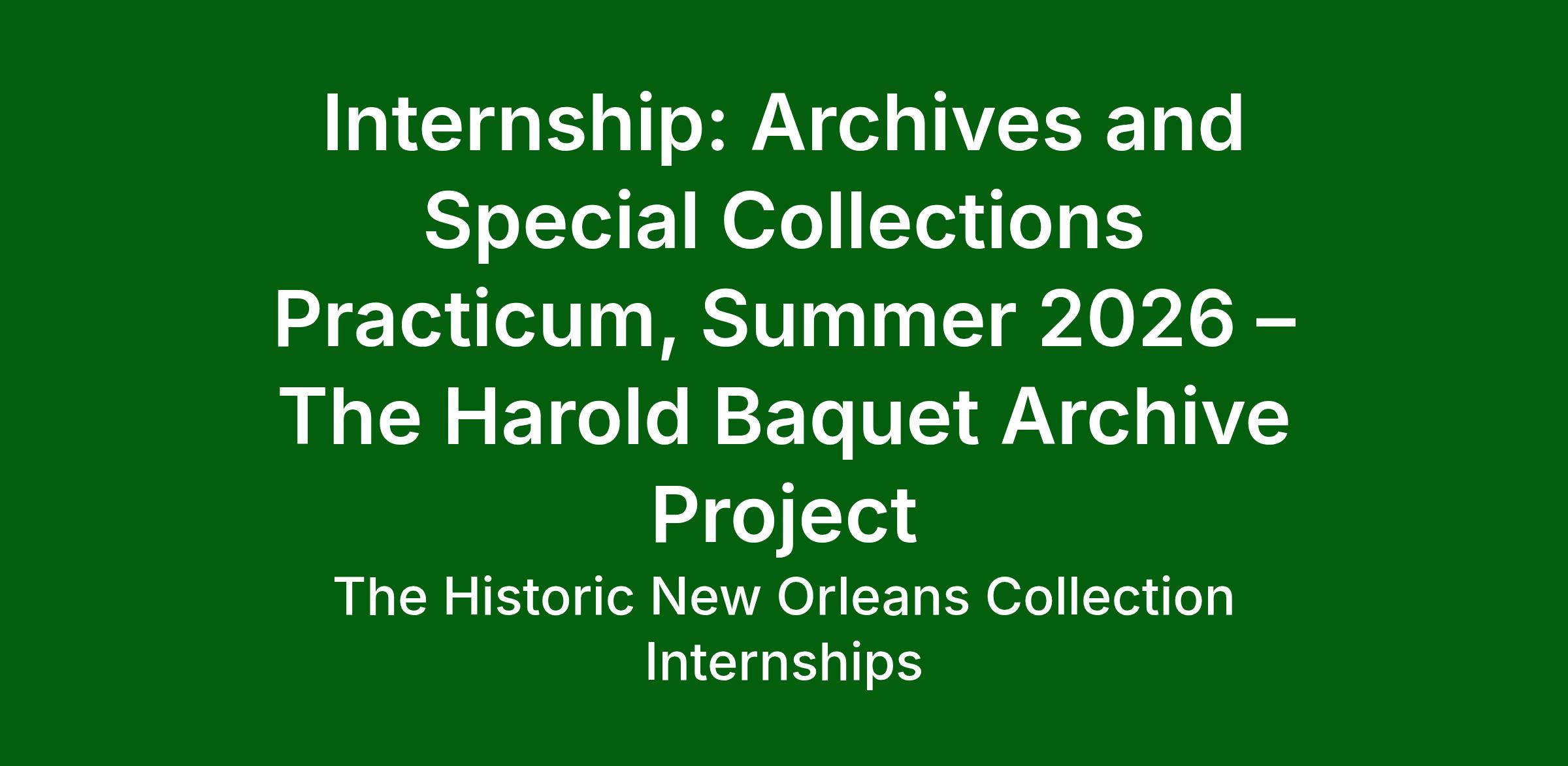 The Archives and Special Collections Practicum at HNOC presents an opportunity for aspiring public history professionals to immerse themselves in the study, preservation, and engagement with collections that embody the rich cultural heritage of Louisiana. Through hands-on experiences under the guidance of experienced staff at the Williams Research Center, students will develop transferable skills essential for careers in public history, including effective research methodologies, and some fundamental techniques of collections management. Hosted with HNOC’s Williams Research Center, this program is designed to promote experiential learning through a structured curriculum that emphasizes practical skills and professional development in key areas such as library and information sciences, archival management, and historic research and writing.