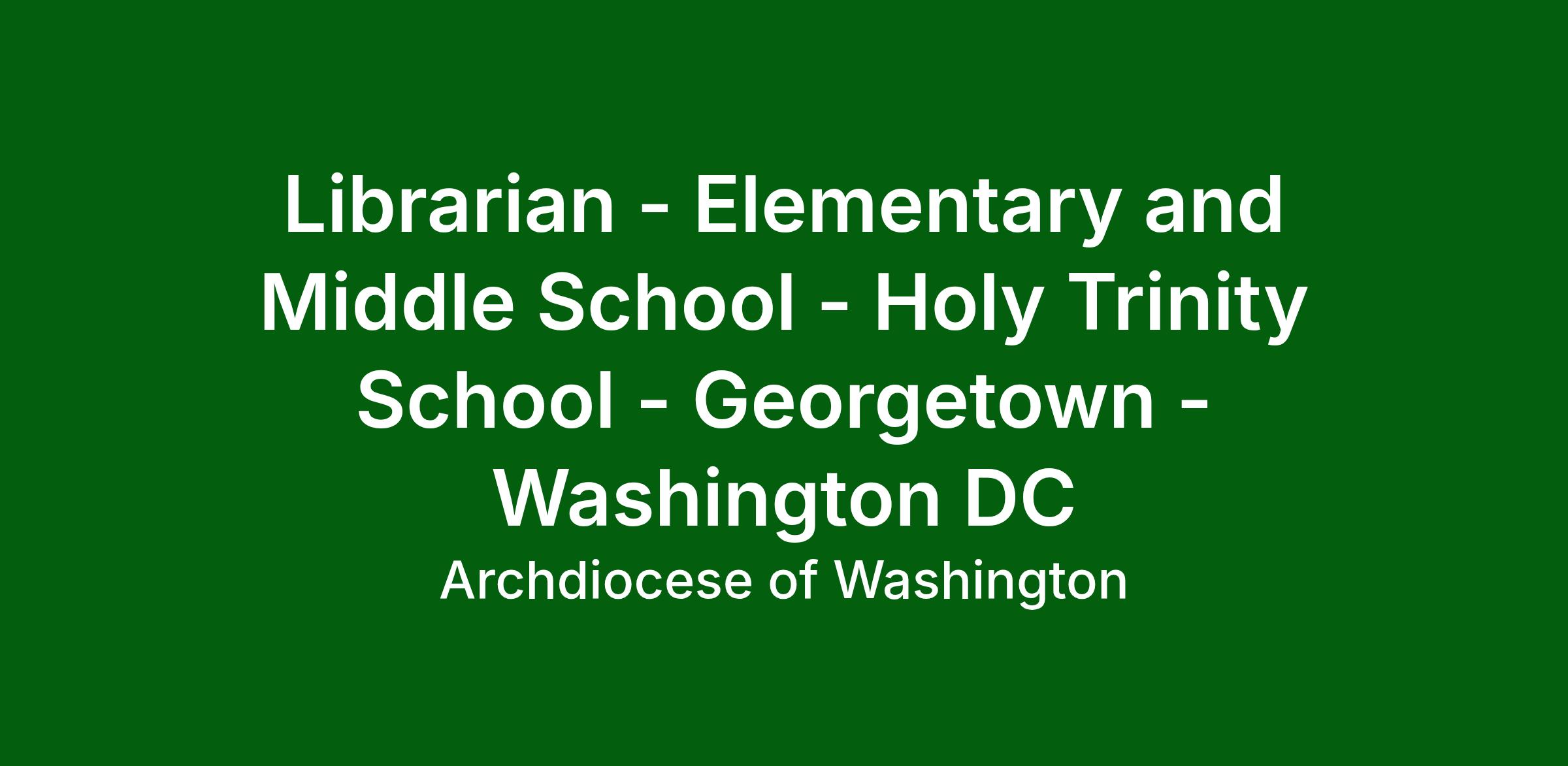 Holy Trinity School in Washington DC Georgetown area is hiring a Elementary and Middle grades Librarian for the 2026-27 school year.
