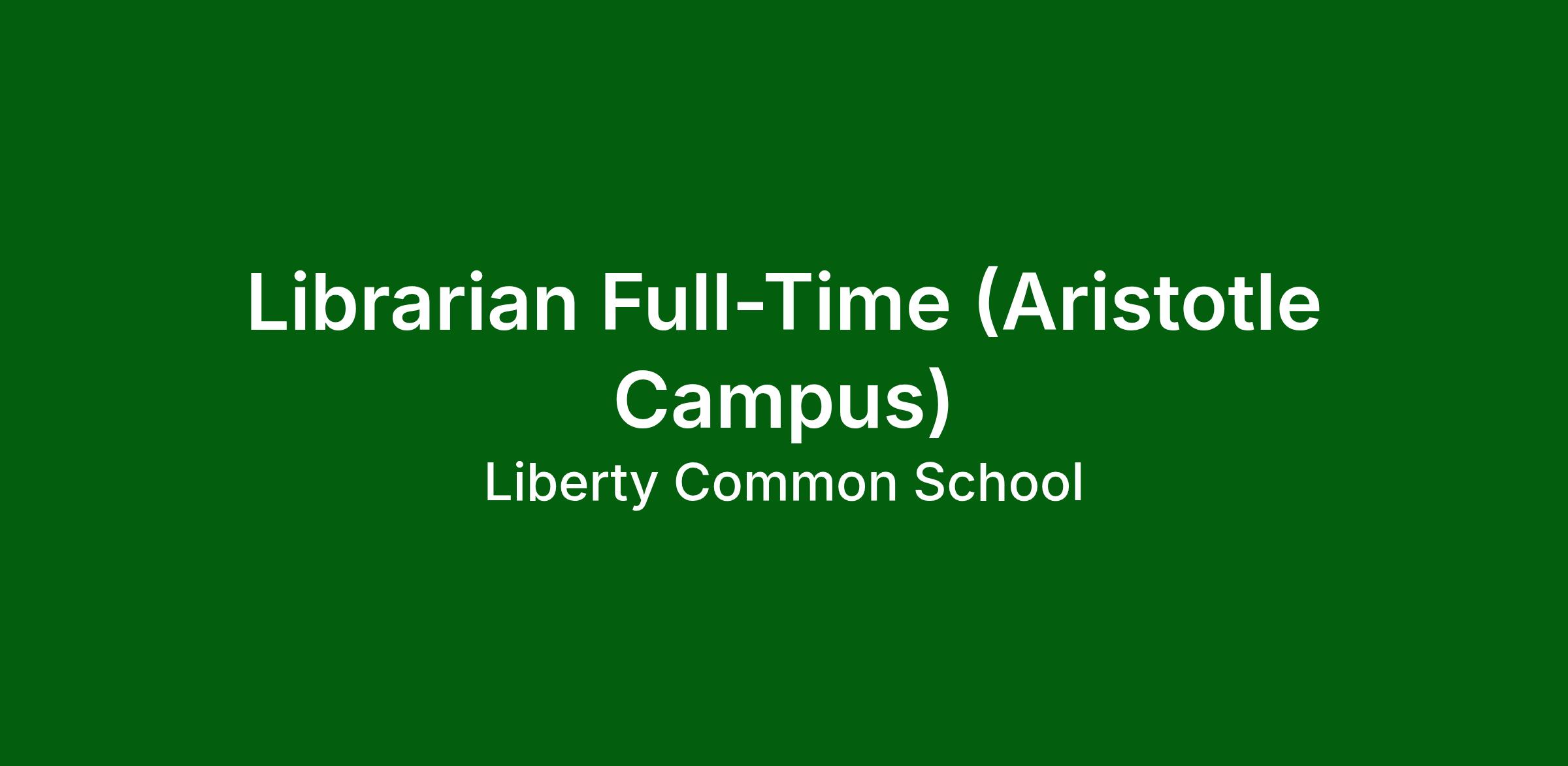 Liberty Common School is seeking a full-time school librarian beginning August 2026 at the Liberty Common Elementary School (Aristotle campus). Liberty Common School is a public, tuition-free school chartered by the Poudre School District in Fort Collins, Colorado utilizing the Core Knowledge© curriculum and timeless principles of classically oriented education. The Aristotle campus currently enrolls over 400 students’ grades k-6.