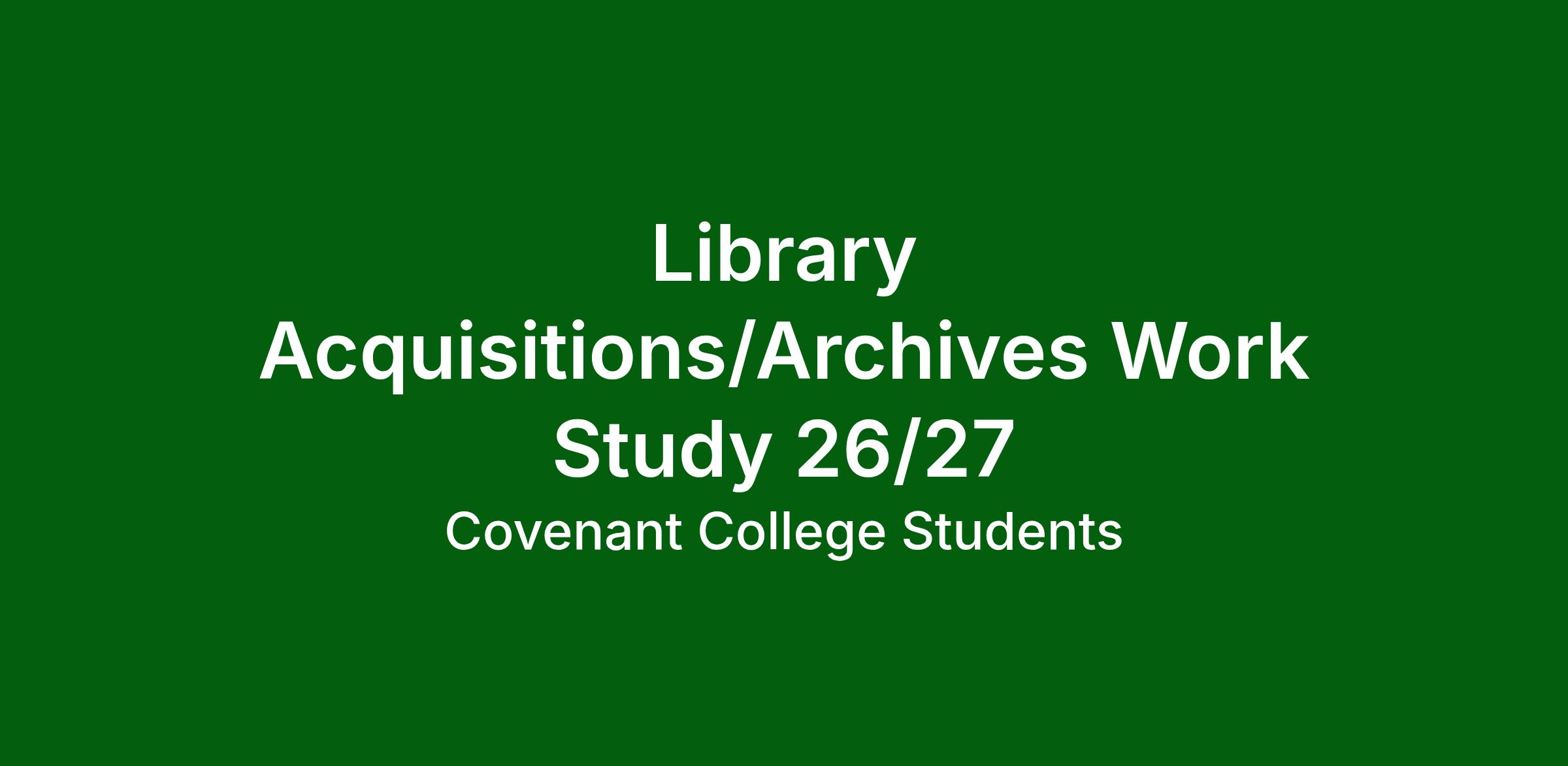 To assist in the process of making library and Covenant College Archive materials available to the Covenant community.