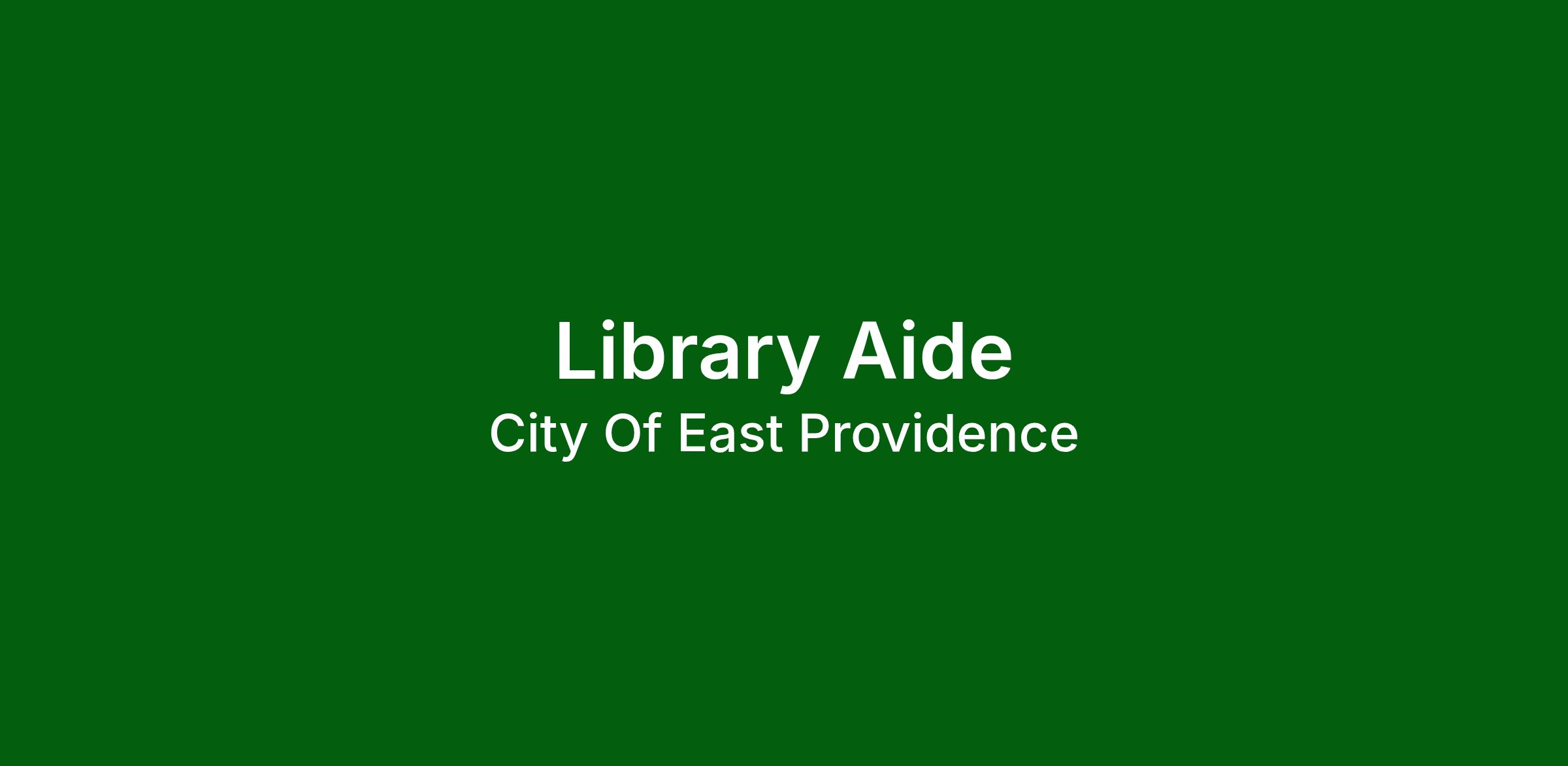 Job Description: Under the supervision of the Circulation Coordinator, the Library Aide performs support duties at all East Providence Public Library locations. The Library Aide provides customer service, performs circulation duties, provides assistance in other departments, and performs other tasks as assigned. Library Aide is a 35 hour per week position and includes up to two (2) evenings per week and alternating Saturdays.