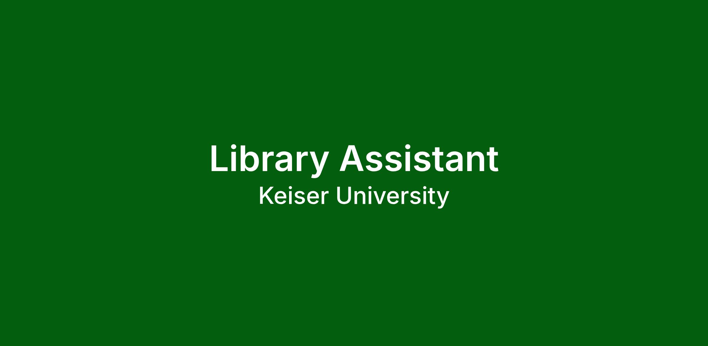 The Library Assistant is responsible for maintaining the collection, following library policy, and maintaining a high quality collection of relevant print and electronic educational materials that support Keiser's academic offerings. The Library Assistant is responsible for: