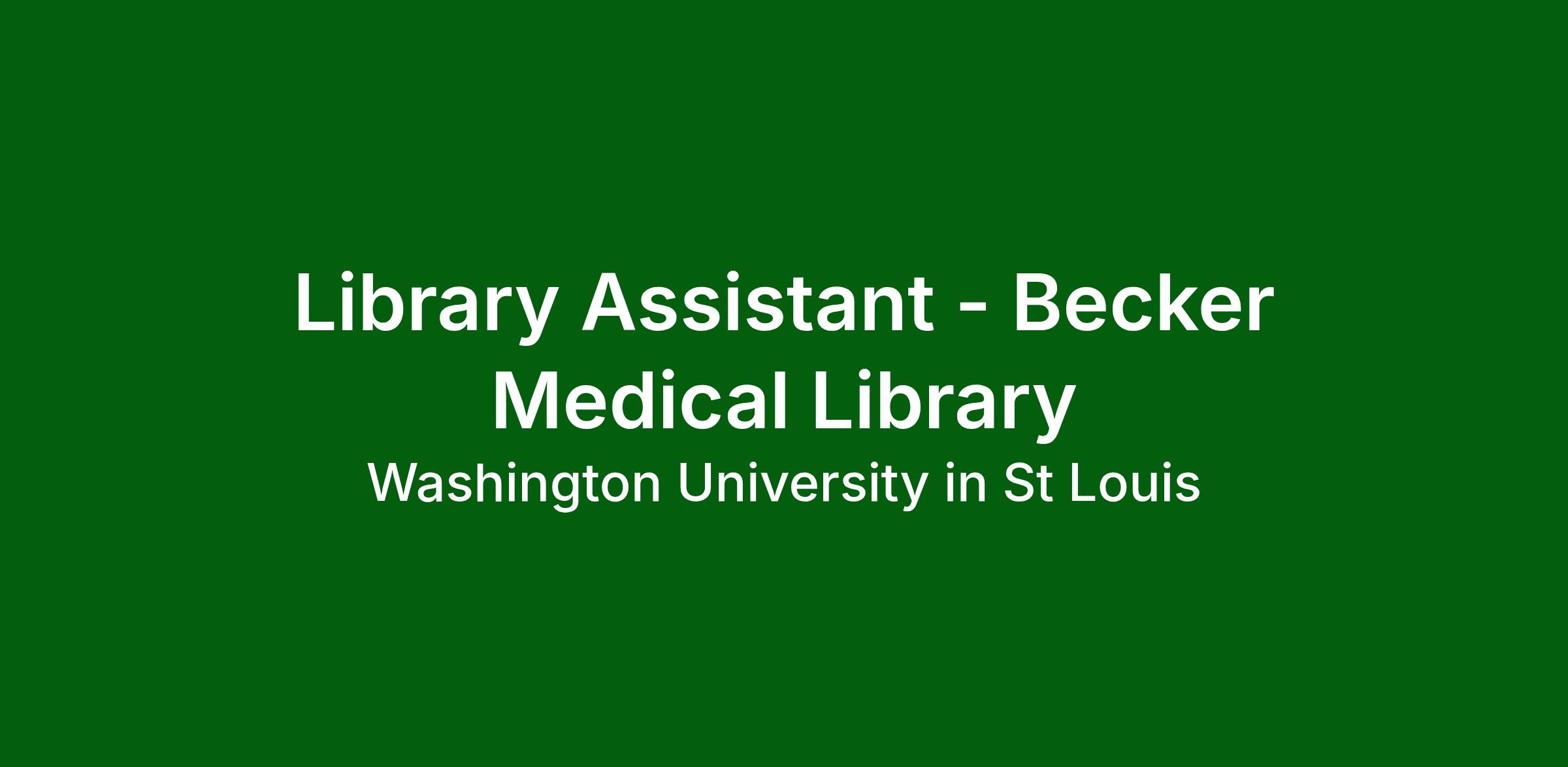 Library Assistant - Becker Medical Library