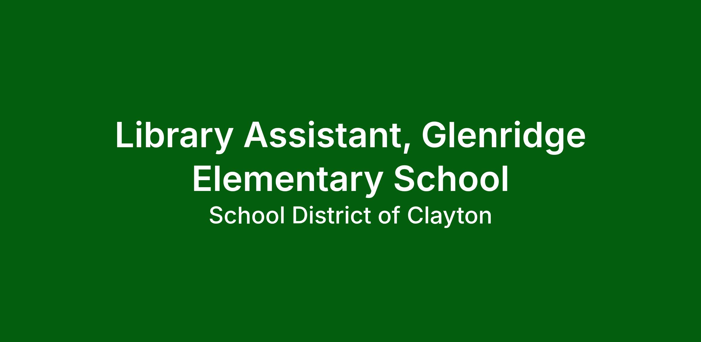 The School District of Clayton is seeking an experienced professional with strong multitasking abilities to fill the position of library assistant at Glenridge Elementary School for the 2026-2027 school year. The successful candidate will have a positive attitude, strong communication skills, and a willingness to assist in the day-to-day management and function of the school library.