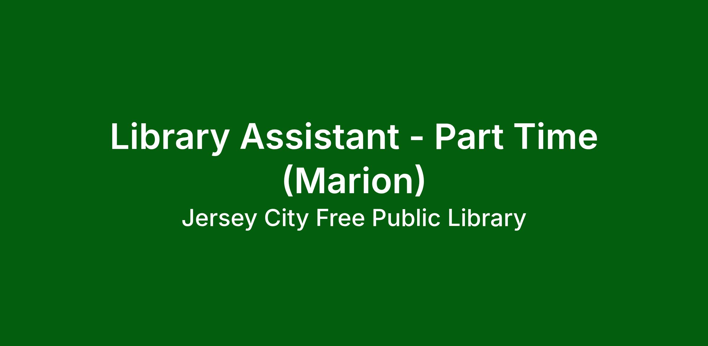 ABOUT THIS POSITION: The Part-Time Library Assistant provides essential support in the daily operations of the Jersey City Free Public Library. This position assists with customer service, shelving materials, organizing collections, and helping patrons locate resources. The Part-Time Library Assistant contributes to creating a welcoming and efficient library environment while supporting programs, events, and other library services as needed.