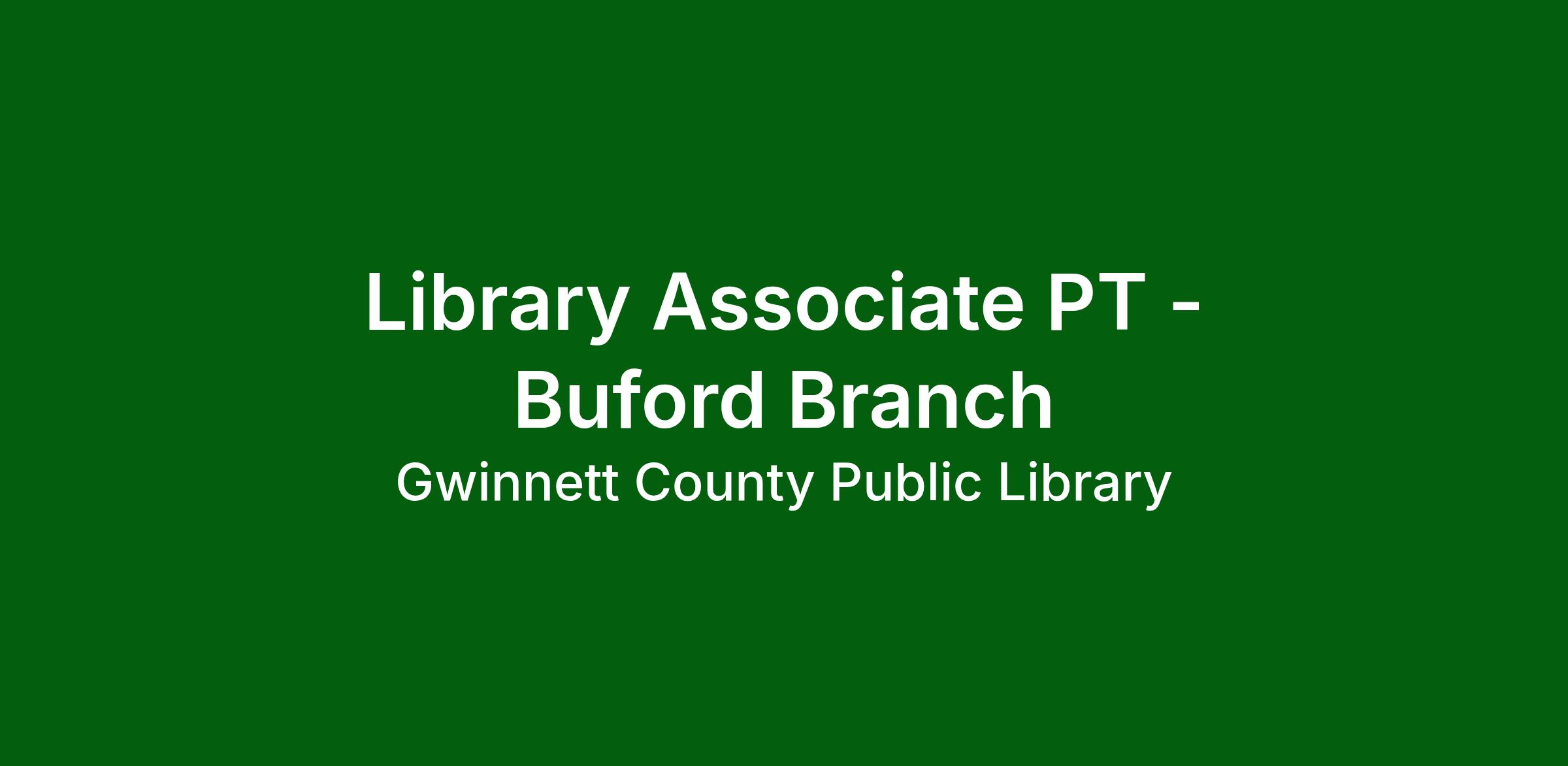 ** This Part-Time Library Associate position will be located at the Buford Branch: 2100 Buford Hwy, Buford, GA 30518. **