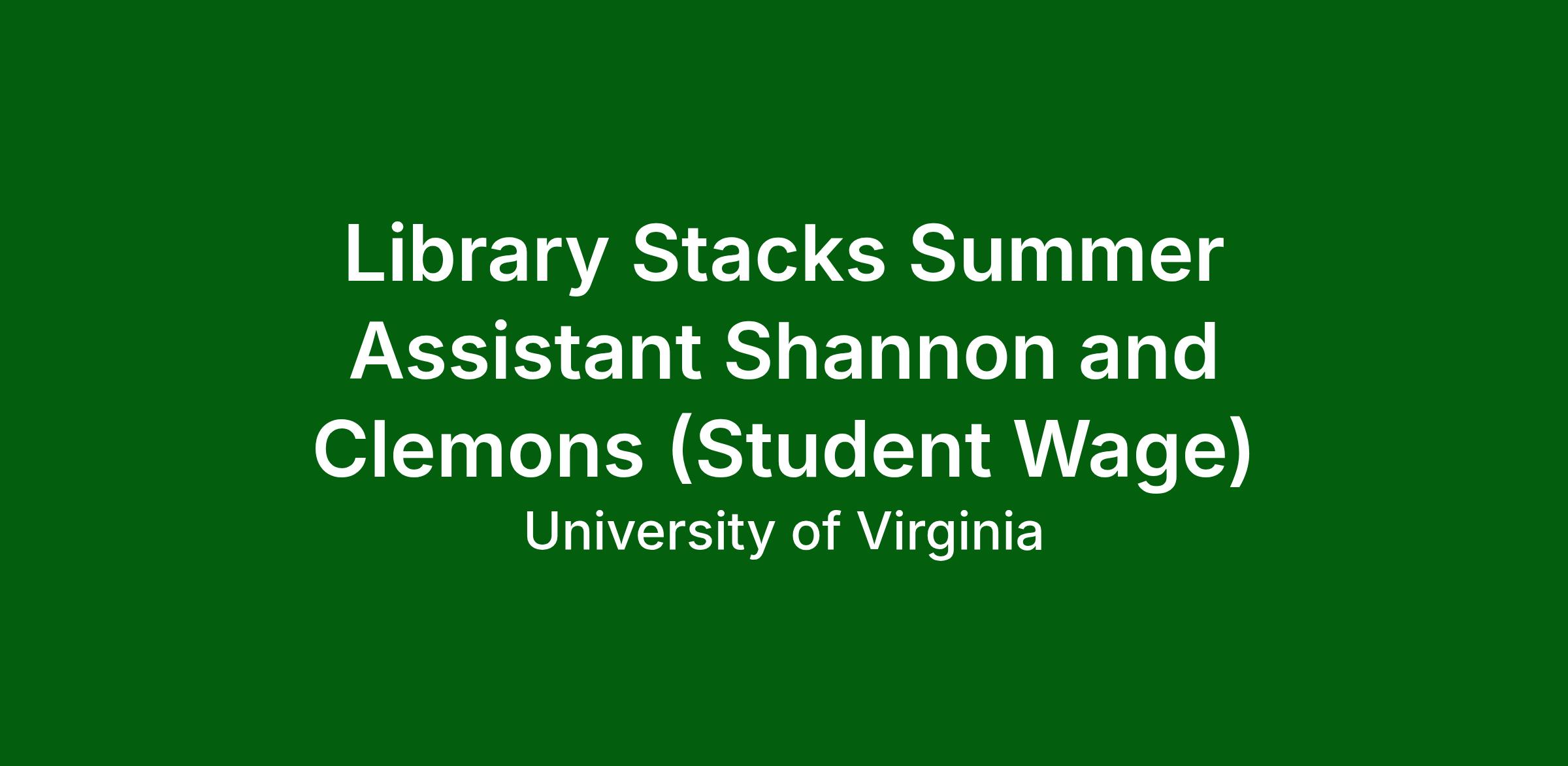 A position is available for a Stacks Assistant at Shannon and Clemons Libraries for the Summer of 2026. The opening is for 20-30 hours per week. The position will start upon hire and end at the beginning of the 2026 Fall semester.