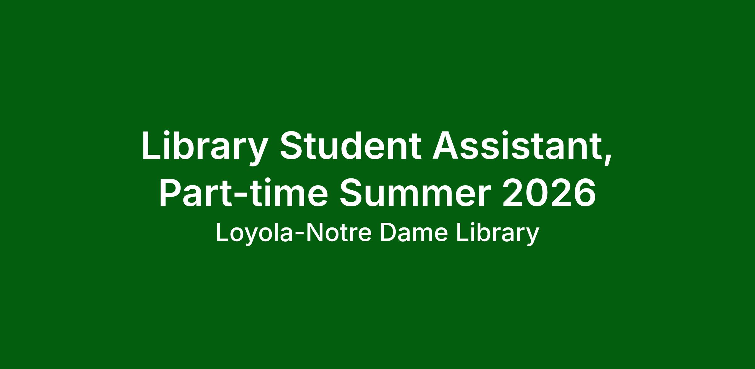 The Loyola Notre Dame Library is hiring Student Assistants to provide customer service and project support from May 10, 2026, through September 4, 2026. Reporting to the Access Services unit, Student Assistants will have opportunities to work collaboratively and independently throughout the summer.