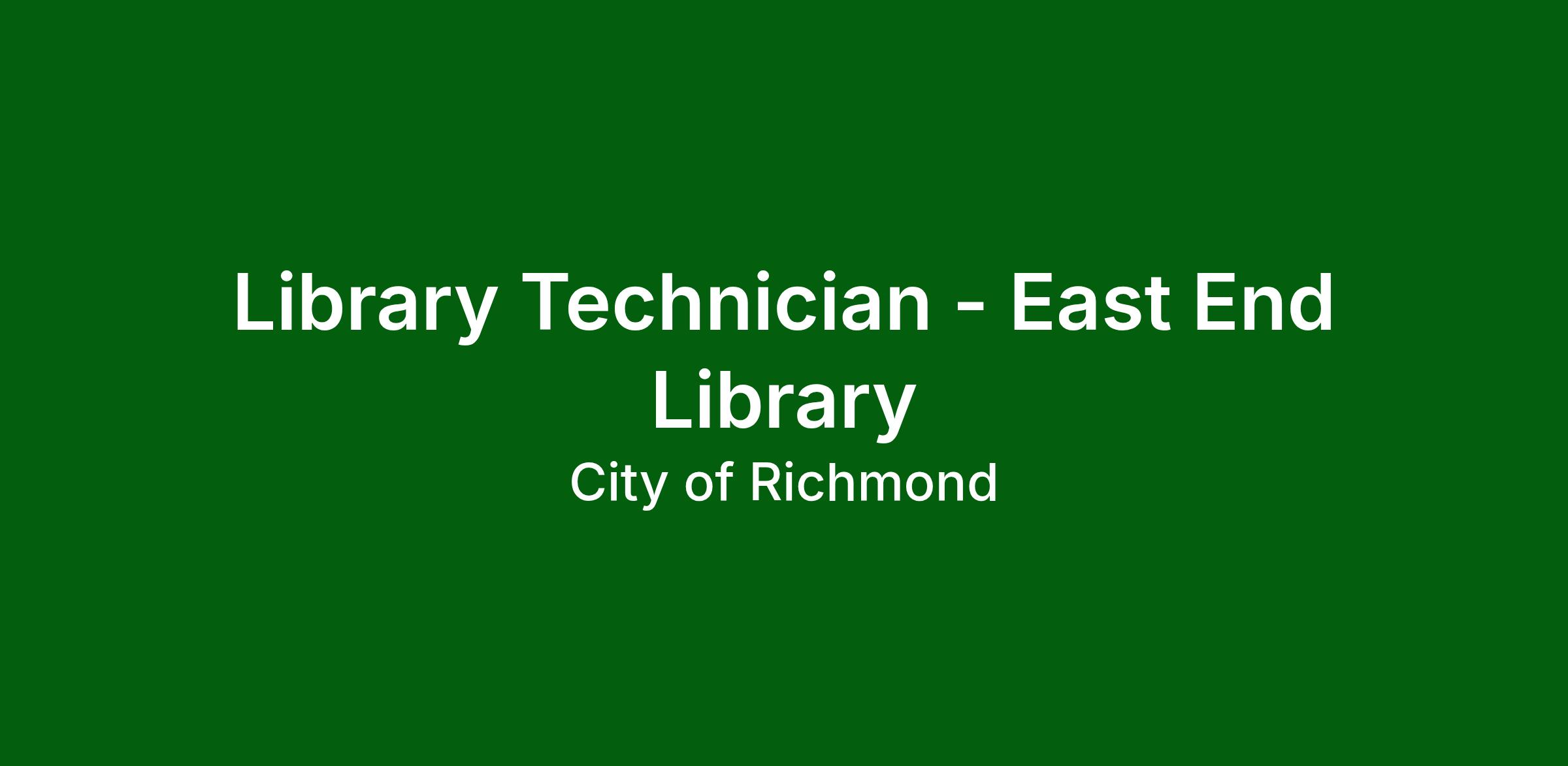 The Richmond Public Library is committed to becoming an employer of choice AND we are dedicated to the growth of our workforce. We value our employees and seek to attract and retain the best. We are also committed to individual, professional growth! The selected candidate will have the opportunity to attend applicable training and educational workshops.