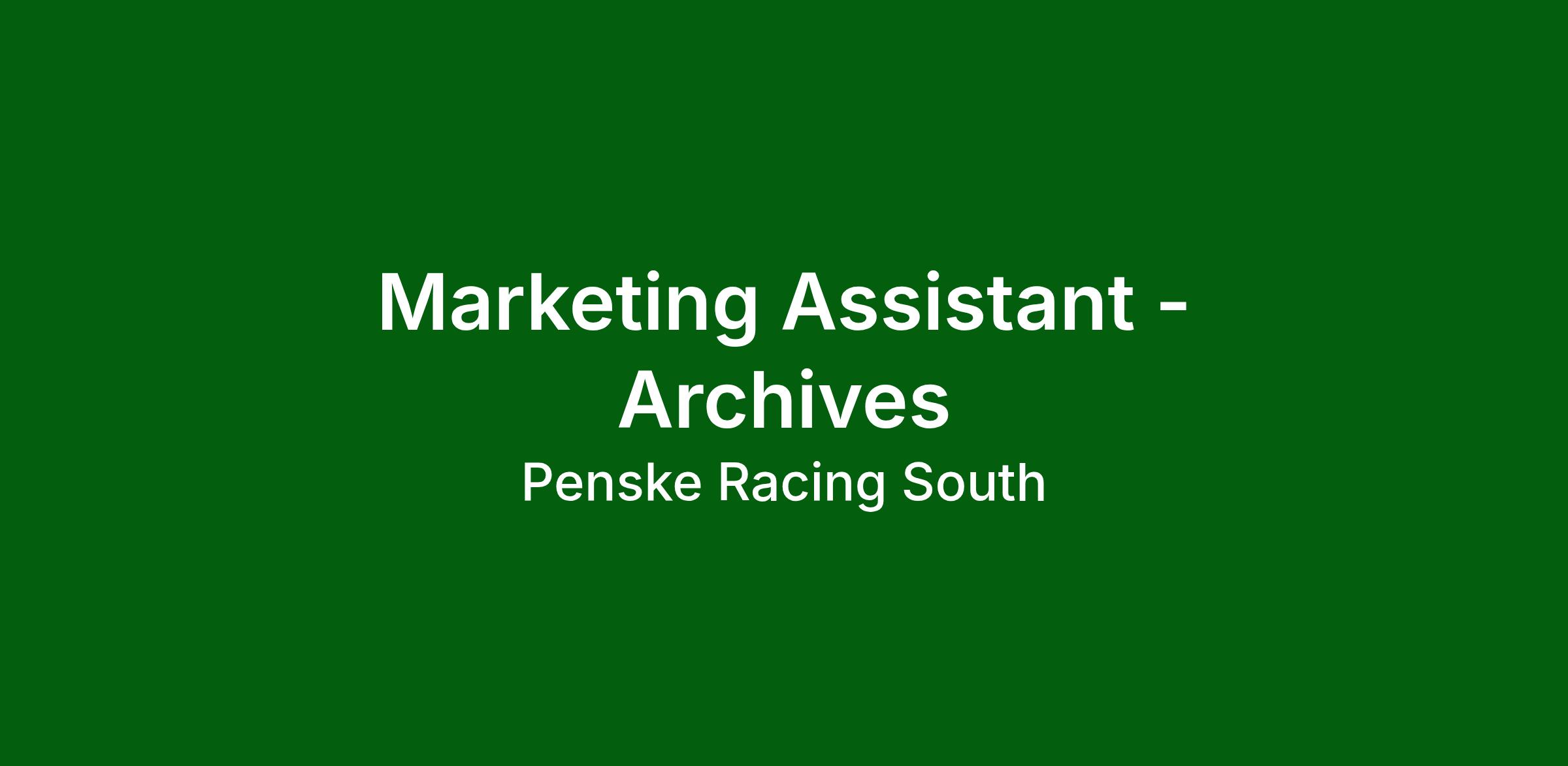 Working hands-on with video, photography, documents, memorabilia, and large-format materials, the Archives Assistant helps ensure that Team Penske’s legacy is accurately documented, properly preserved, and accessible for future generations. This role is ideal for someone who is highly organized, detail-oriented, and passionate about historical preservation within a dynamic motorsports environment.
