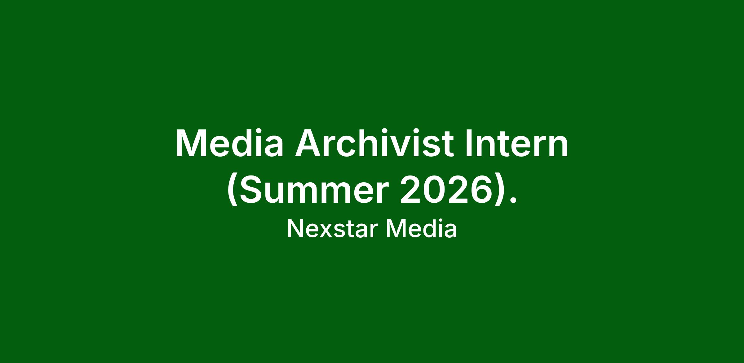 - Go to the Nexstar Careers portal at https://www.nexstar.tv/careers/ and apply for a Summer 2026 Media Archivist Internship no later than 5pm CST, Monday, April 27, 2026.