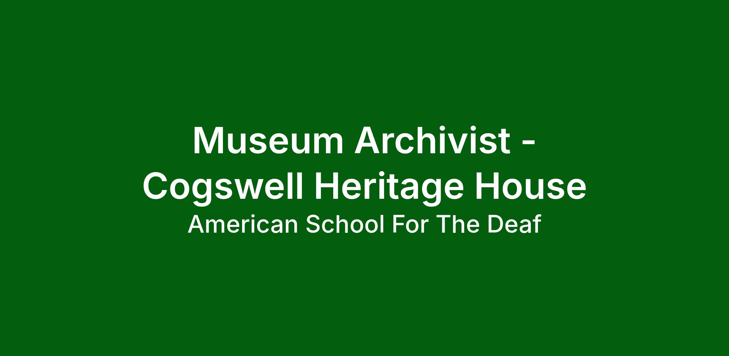 The Archivist is a multi-faceted position that integrates the roles of Archivist, Registrar, Project Manager, and Museum Manager. This role is responsible for the professional stewardship of collection materials, including accession, repatriation, cataloging, and conservation. The Archivist manages both physical and digital operations of the Cogswell Heritage House/American School for the Deaf Archival Database, ensuring all practices comply with federal and state regulations and standardized archival and museum practices. Additionally, the position is responsible for the maintenance and operation of the building housing the archive.