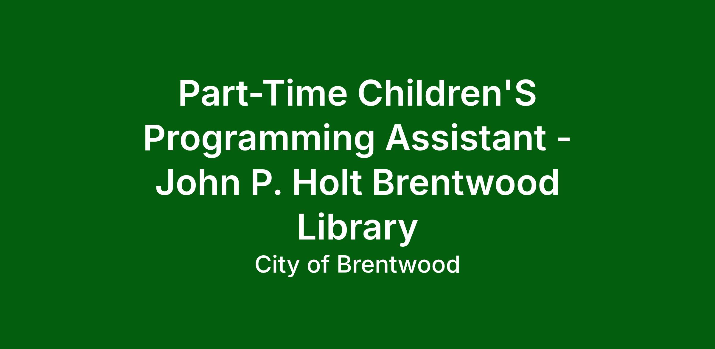 Seeking candidates for Part-Time Children’s Programming Assistant at the John P. Holt Brentwood Library, Brentwood, TN
