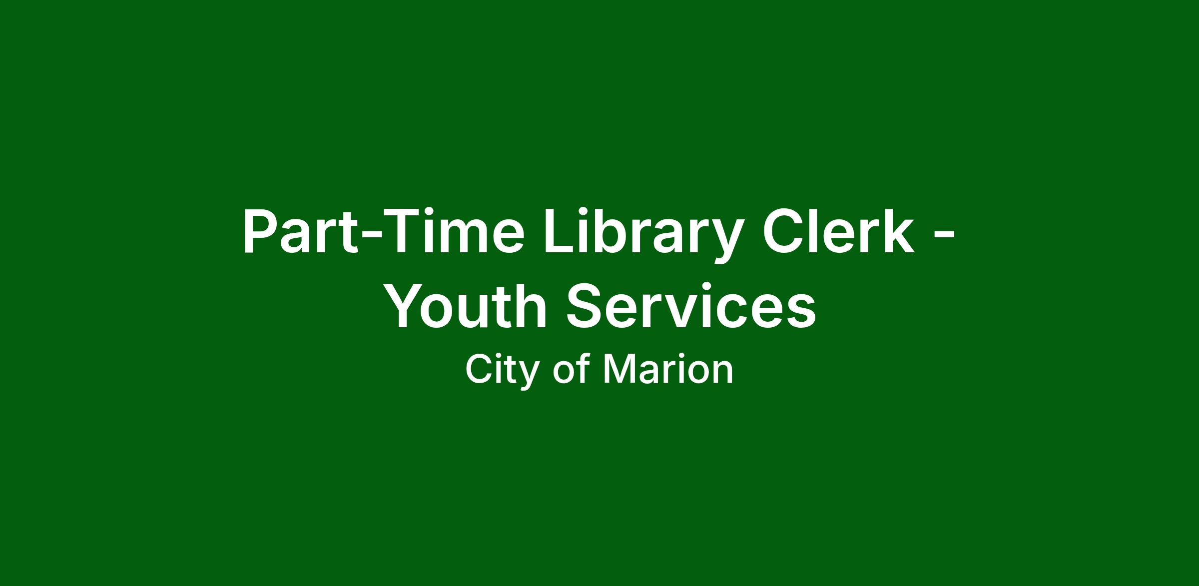 Job Title: Part-time Library Clerk - Youth Services