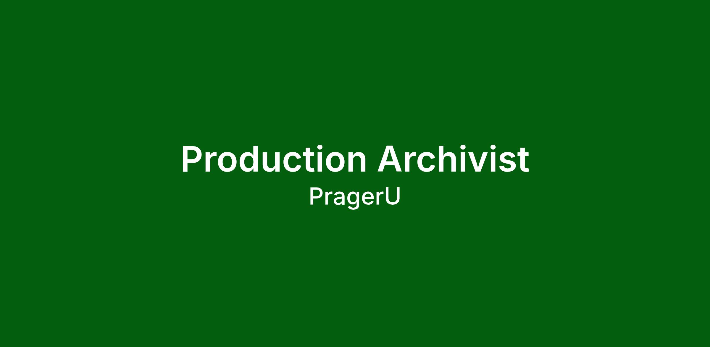 The Production Archivist will be responsible for creating, maintaining, and scaling a digital library of assets from past, current, and future video and audio projects across the PragerU Production Team’s arsenal of content lines. This is a new position with the goal of “cleaning house”: organizing stock assets, archiving completed projects to cold storage, and other assignments as needed.