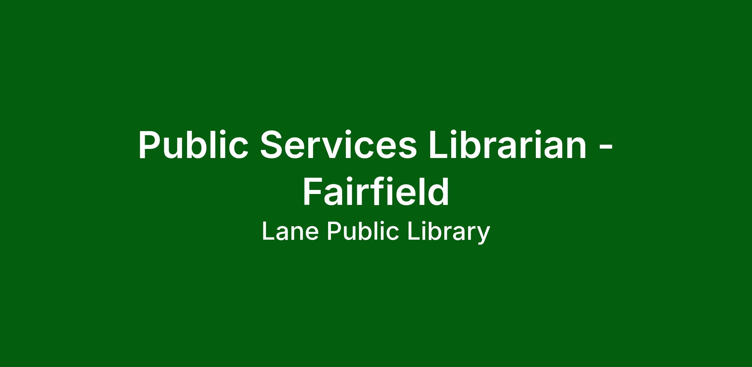 Public Services Librarian - Fairfield