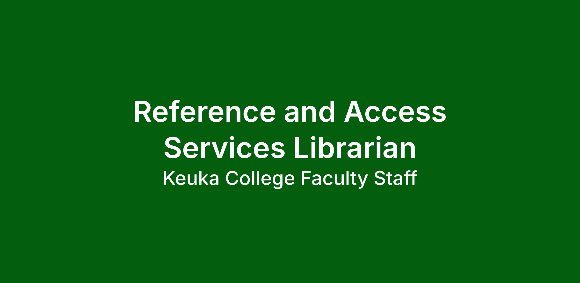The Reference and Access Services Librarian will manage the daily operations of library services including circulation, reserves, and Interlibrary Loan. This role involves supervising approximately 20-25 student employees, managing the circulation desk, and providing customer service. This librarian will also work with the library team to provide reference and research services to the Keuka College community.
