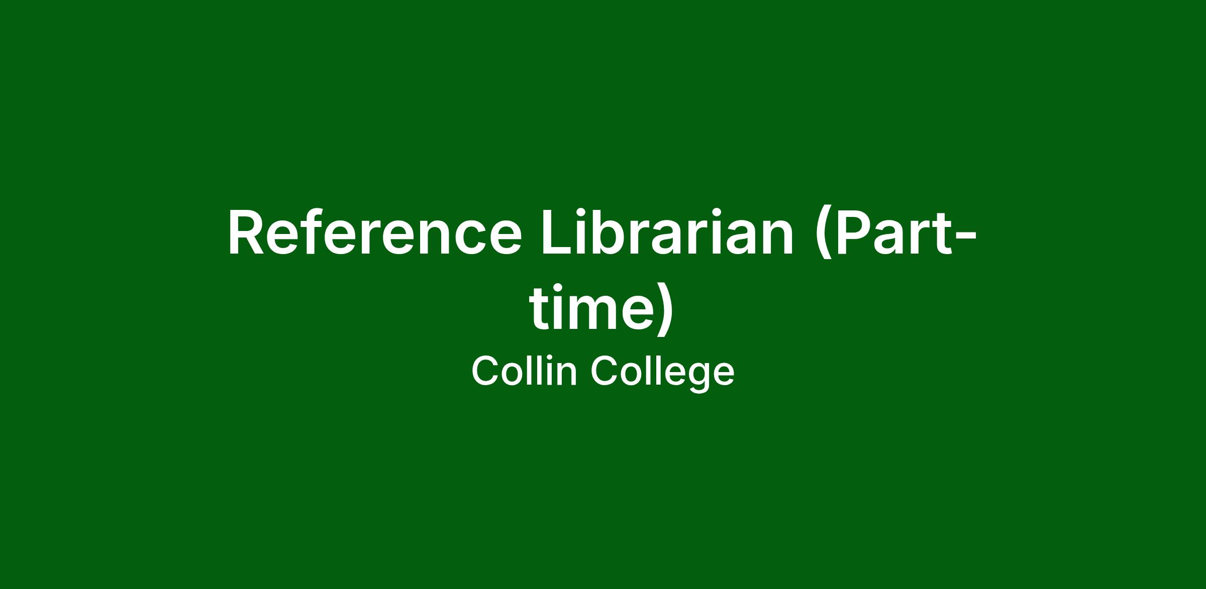 Provide library reference services and instruction to Collin College students, faculty, staff and the general public. Explain and assist students, faculty and staff in the use of the library databases, streaming audio and video, library catalog, electronic books and other features located on the library homepage. Develop, evaluate and maintain the library collection and serve as library liaison in assigned discipline department.Required Qualifications: