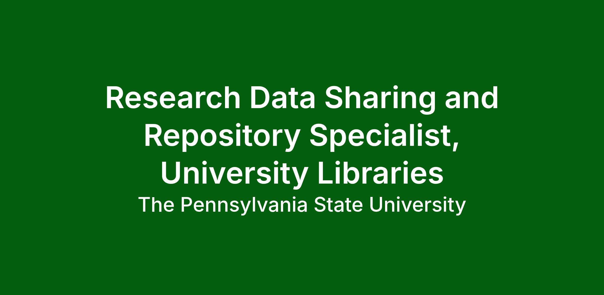 Join the Research Data Stewardship Department as a Research Data Sharing and Repository Specialist, a central role in supporting Penn State researchers and ensuring institutional repository and data sharing services are researcher-centered, policy-aligned, and sustainable.