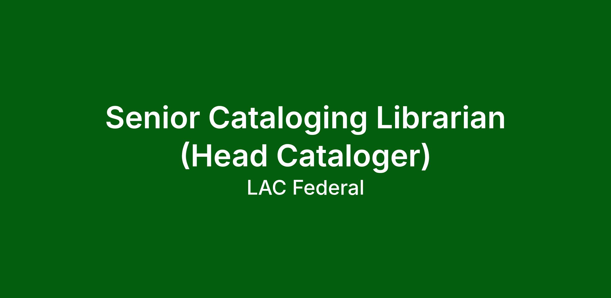 The Senior Cataloging Librarian (Head Cataloger) to support a federal academic library. This position will play a critical role in supporting an Integrated Library System (ILS) migration and ongoing cataloging operations, ensuring the accuracy, consistency, and discoverability of bibliographic and authority data across physical and digital collections. The selected candidate will provide advanced cataloging expertise, perform metadata normalization and authority control, and support system implementation and post-migration cleanup activities within an Ex Libris Alma/Primo environment.