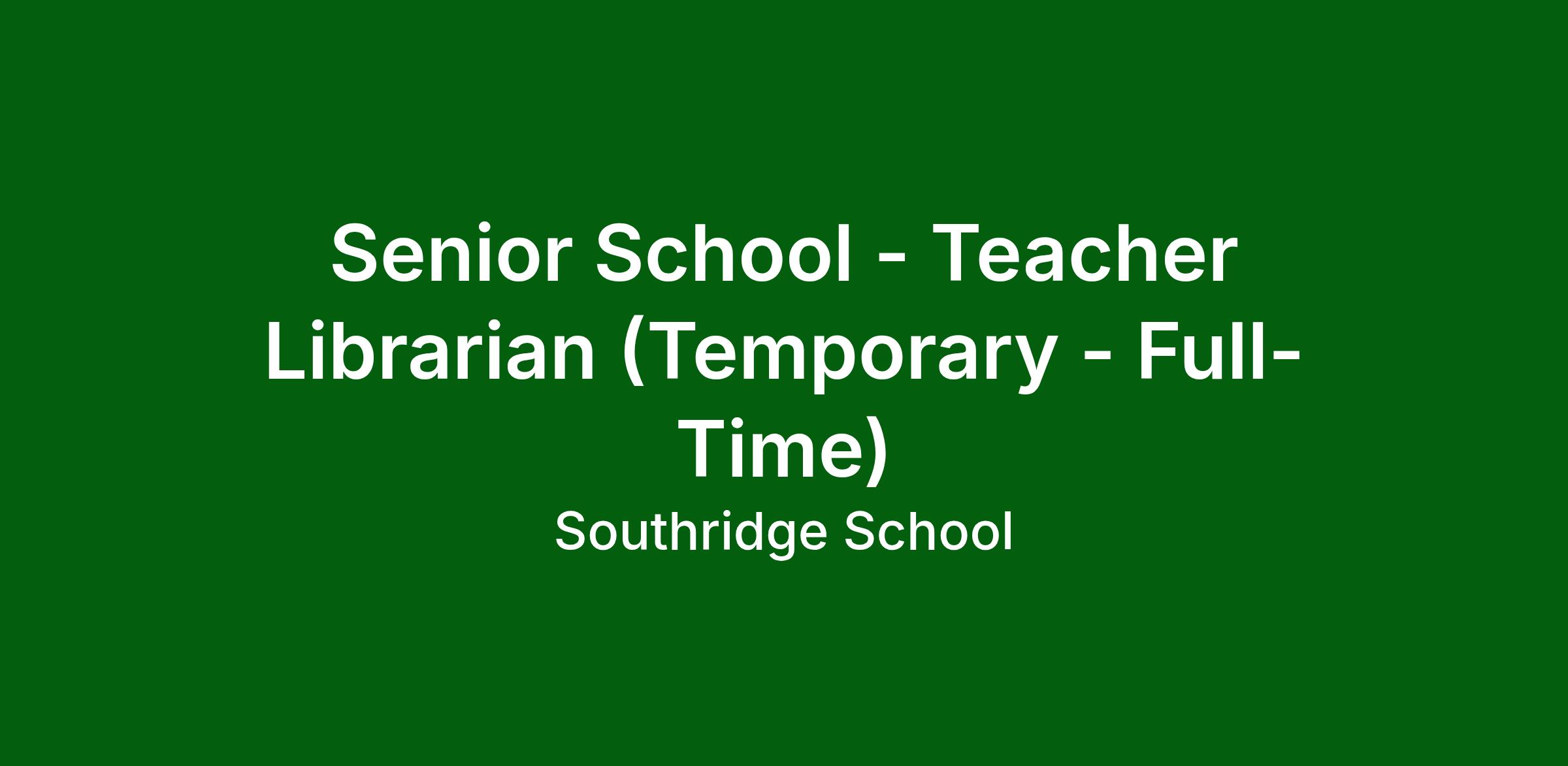 SENIOR SCHOOL - TEACHER LIBRARIAN (TEMPORARY - FULL-TIME)