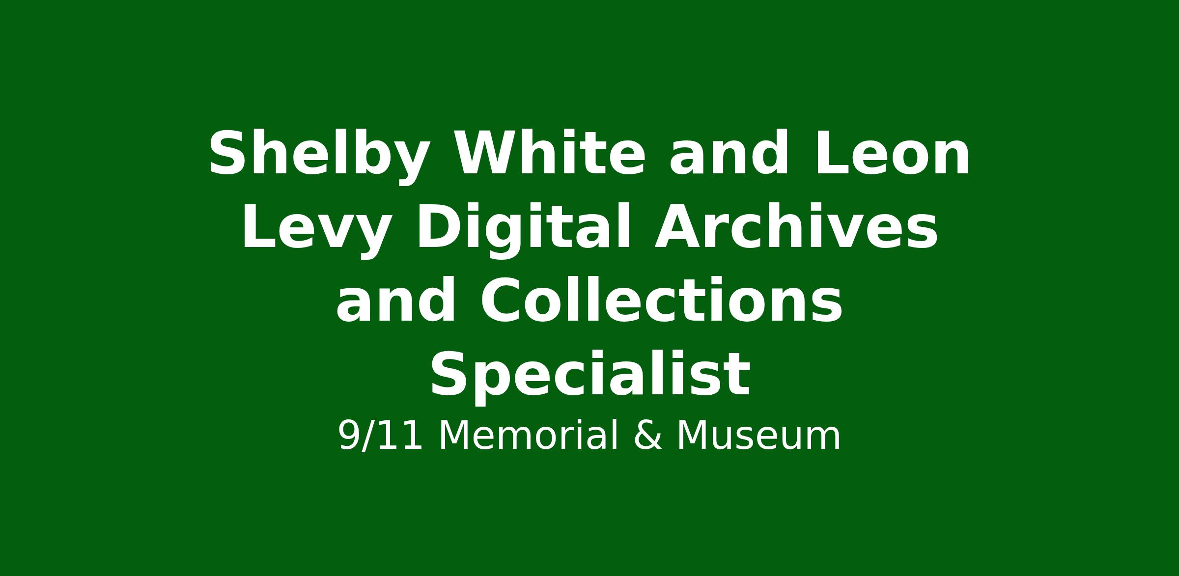 Reporting to the Head of Cataloging and Archives, the Shelby White & Leon Levy Digital Archives and Collections Specialist is a key member of the project team supporting the Shelby White & Leon Levy Digital Archives Initiative at the 9/11 Memorial & Museum. The initiative’s primary objective is to establish an institution-wide digital asset management system (DAMS) that will incorporate both born digital and digitized museum collections and institutional archives.