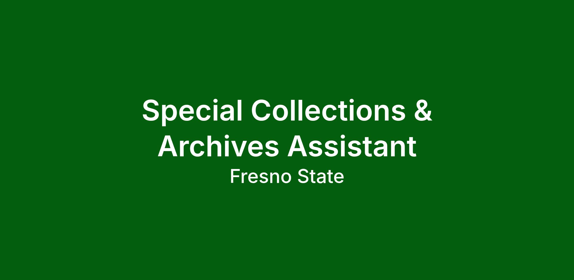 Under the supervision and overall direction of the Head of Special Collections Research Center at the Fresno State Library, the Special Collections and Archives Assistant position in Special Collections oversees the operations of the research reading room for all Special Collections researchers. The incumbent takes the lead in answering reference and research questions in various modes (e.g. email, phone or in-person) and scheduling research visits. The incumbent hires, trains, schedules and oversees the work of student assistants in the unit. The incumbent also keeps track of the balances of various Foundation and state accounts for Special Collections. Additionally, this position serves an active and engaged role in all of the unit’s ongoing initiatives, projects, events and exhibitions. This is an in-office position Monday through Friday, 8 a.m. to 5 p.m.