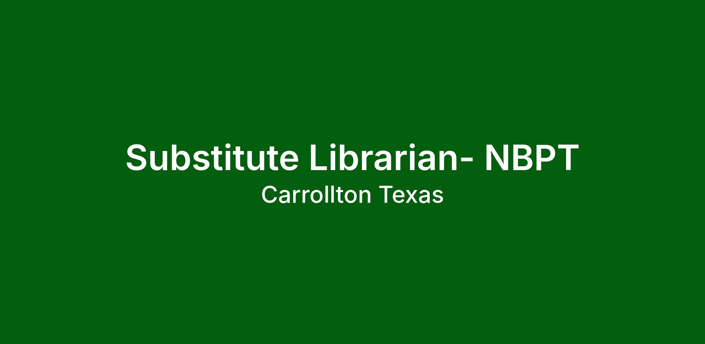 JOB TITLE: Substitute Librarian- NBPT