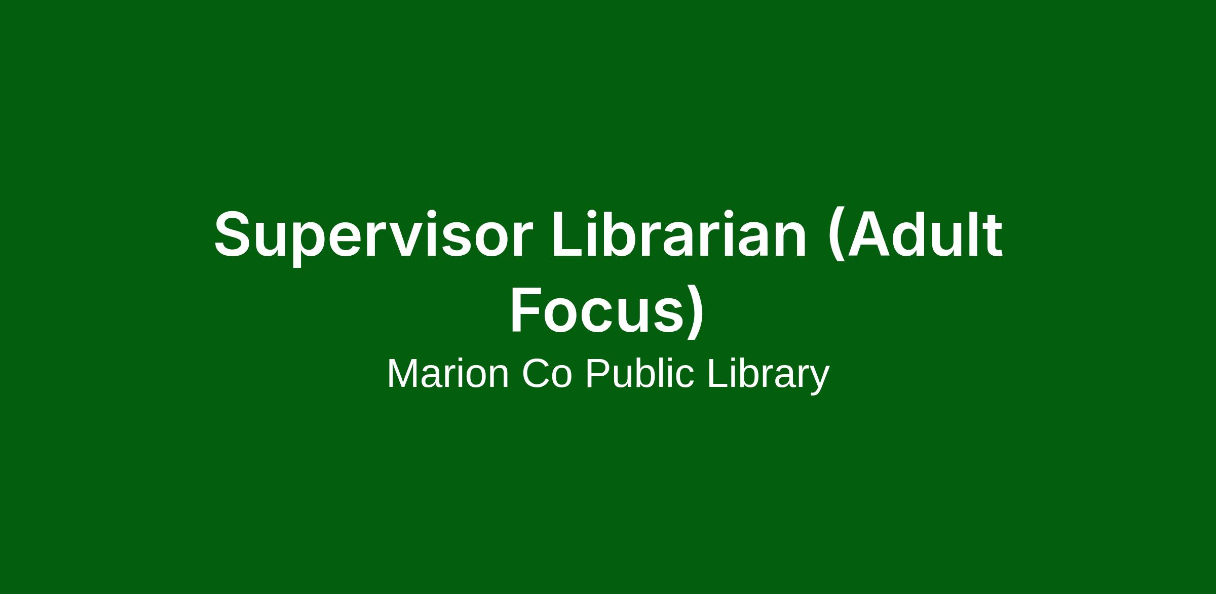 • Title: Supervisor Librarian (Adult Focus)