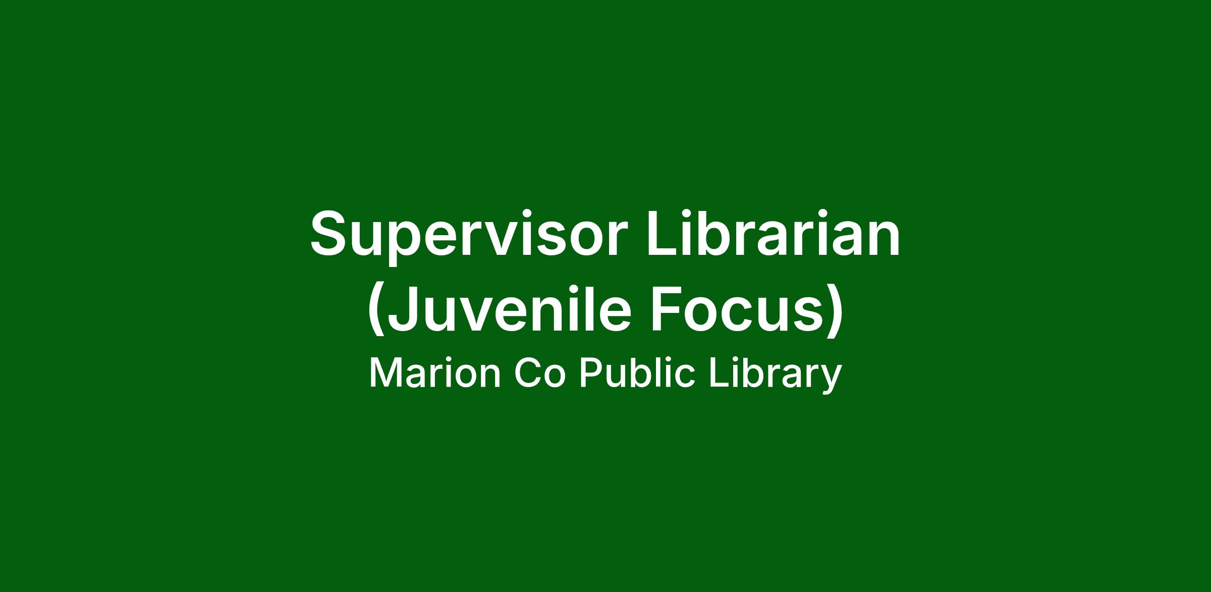 • Title: Supervisor Librarian (Juvenile Focus)