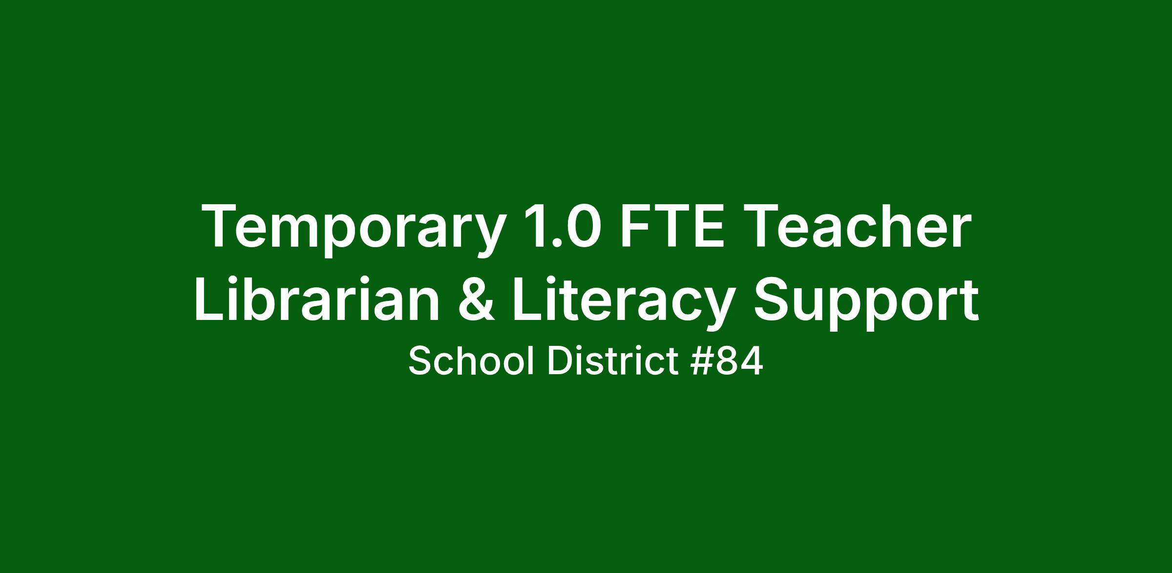 TEMPORARY 1.0 FTE TEACHER LIBRARIAN & LITERACY SUPPORT