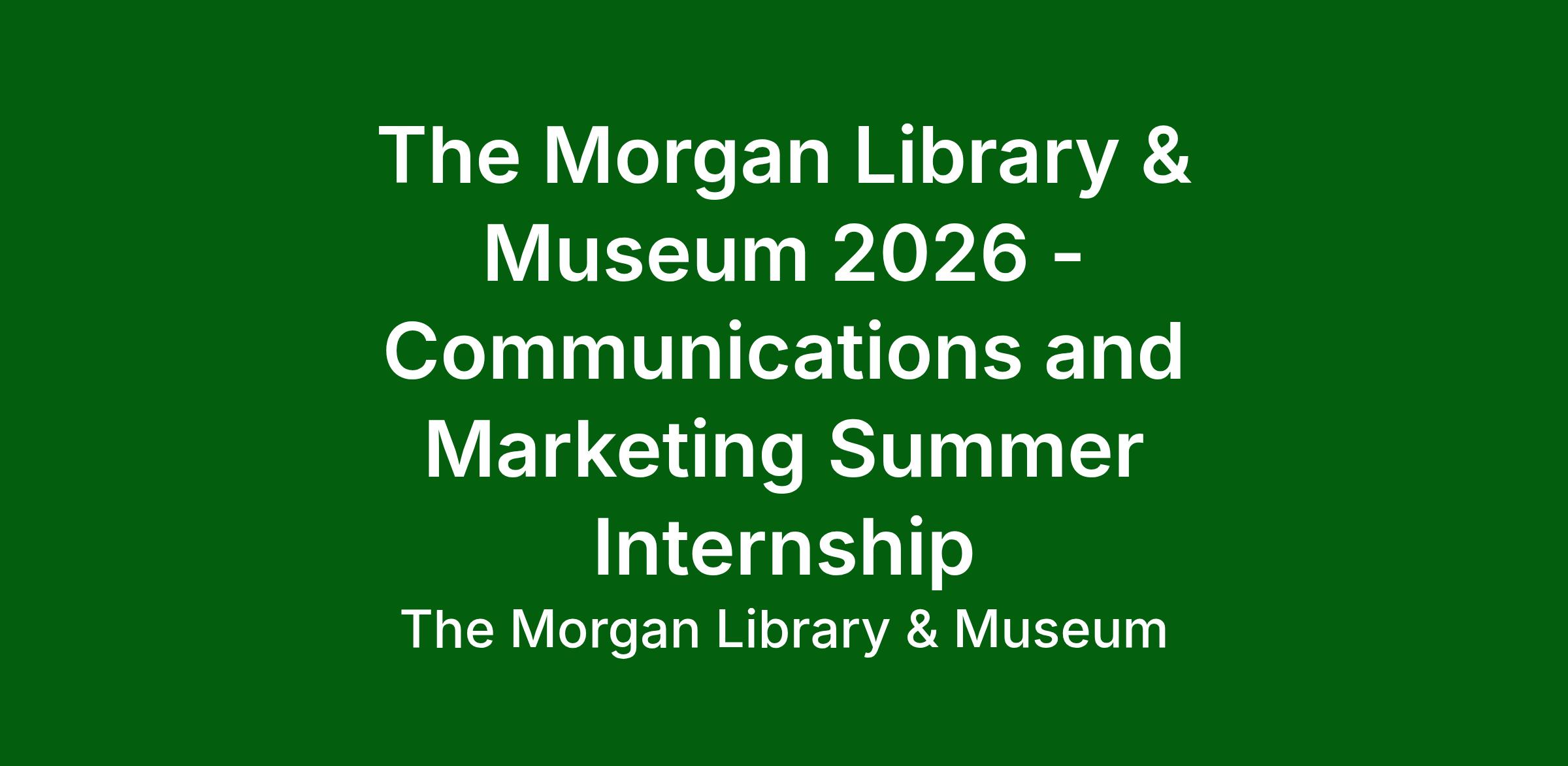 The Morgan Library & Museum welcomes applications for its 2026 paid summer internship program.