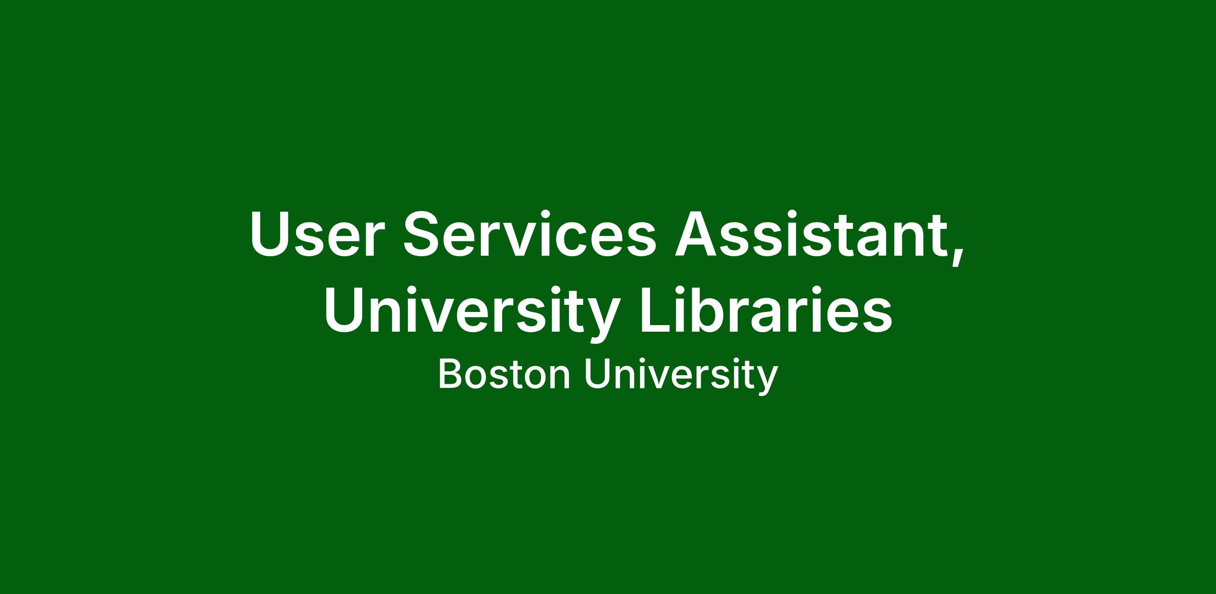 The Boston University Libraries seeks a User Services Assistant who can deliver responsive customer service to the University and extended visitor communities. Providing access to library services, resources, collections, and equipment at one or more of the libraries’ service points, the User Services Assistant actively listens to questions and requests from the user community, interprets policies and procedures, and provides referrals to the libraries' services and resources to address patron needs. This position would work the following hours: